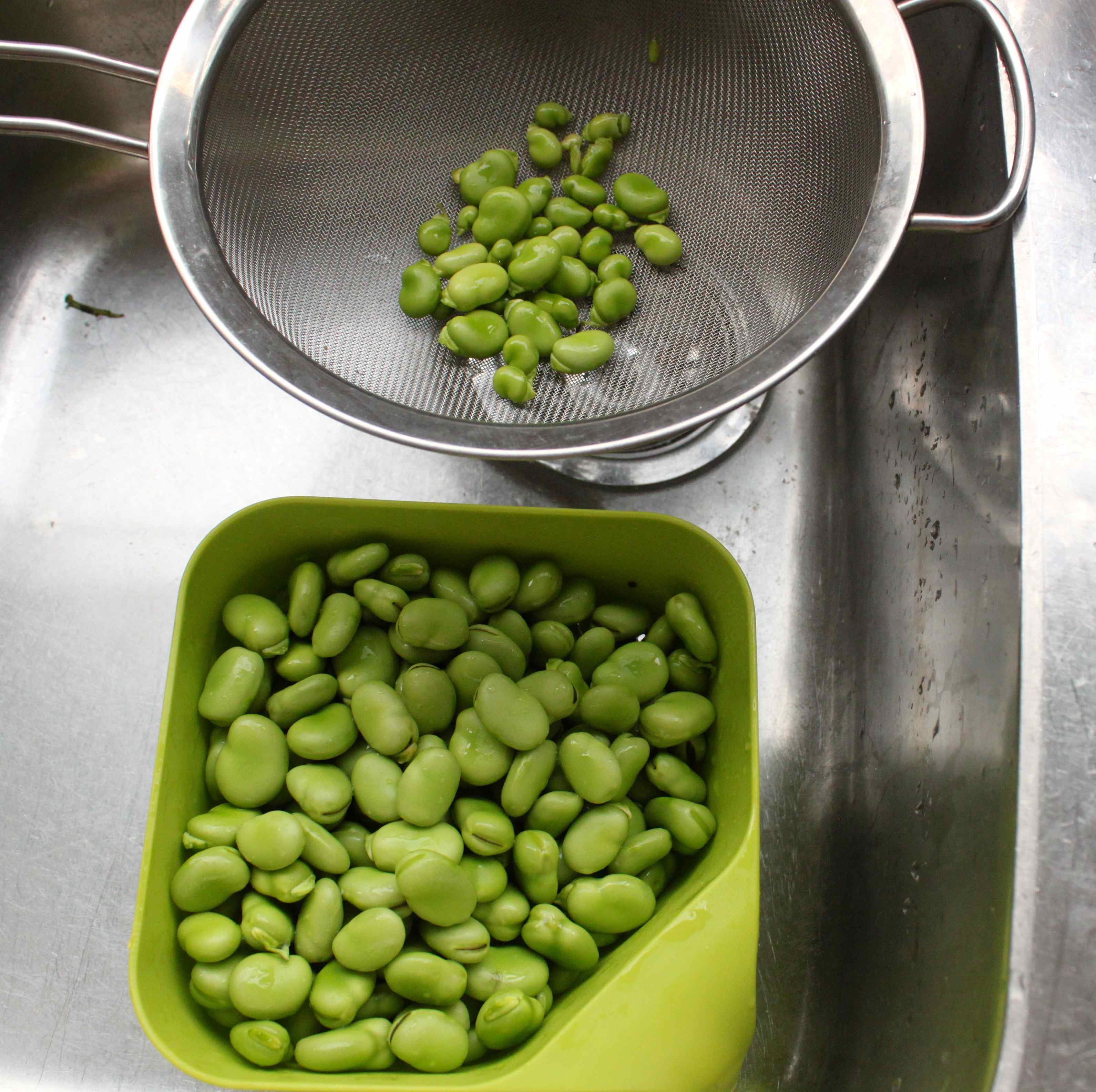 I boiled the broad beans in boiling water for 2 minutes and then put them straight in to iced water. Dried them the best I could and put them in the freezer.