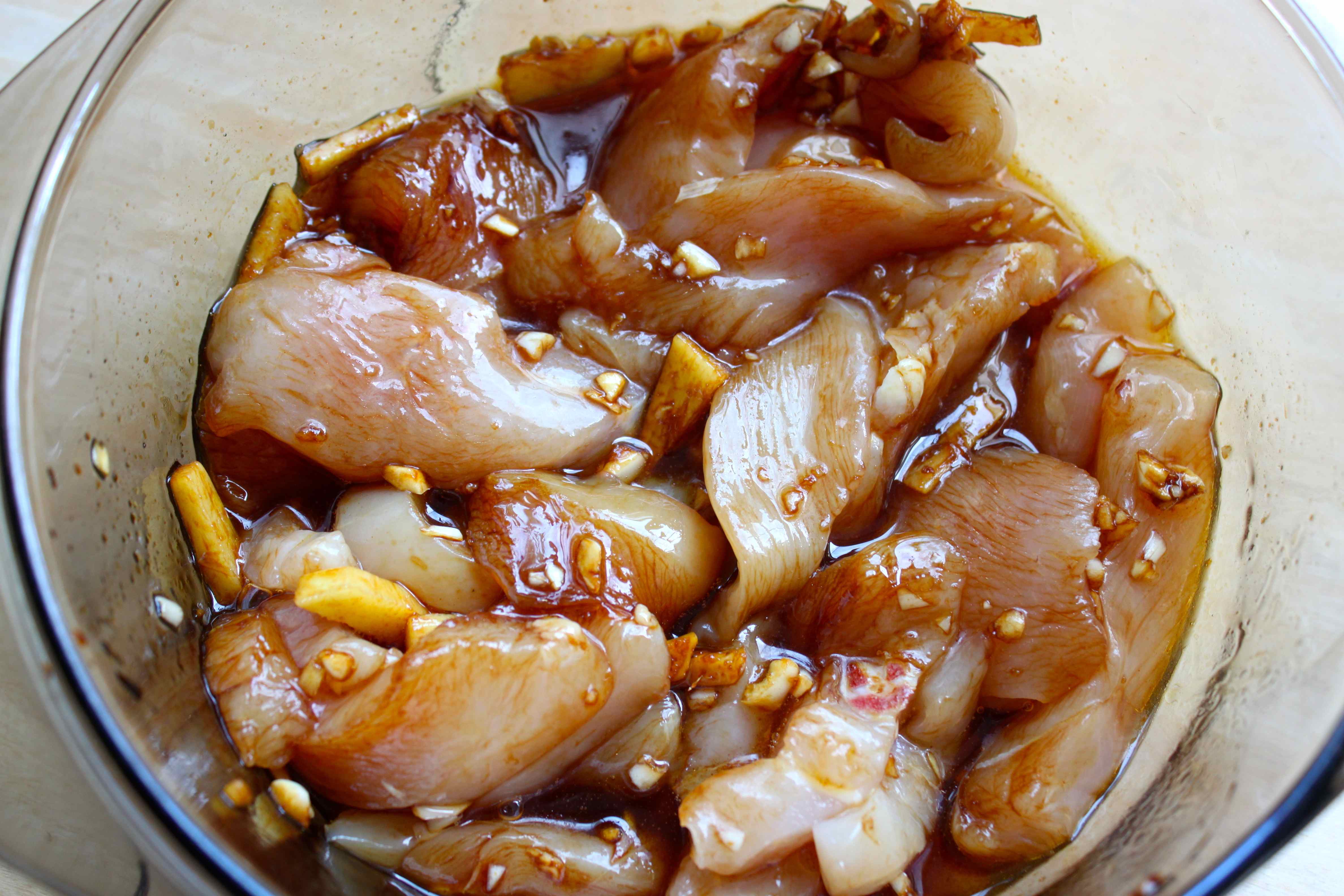 Before I picked the broad beans I prepared a marinade for the chicken I was going to stir fry for dinner; rapeseed and sesame oil, soy sauce, finely chopped garlic and ginger.