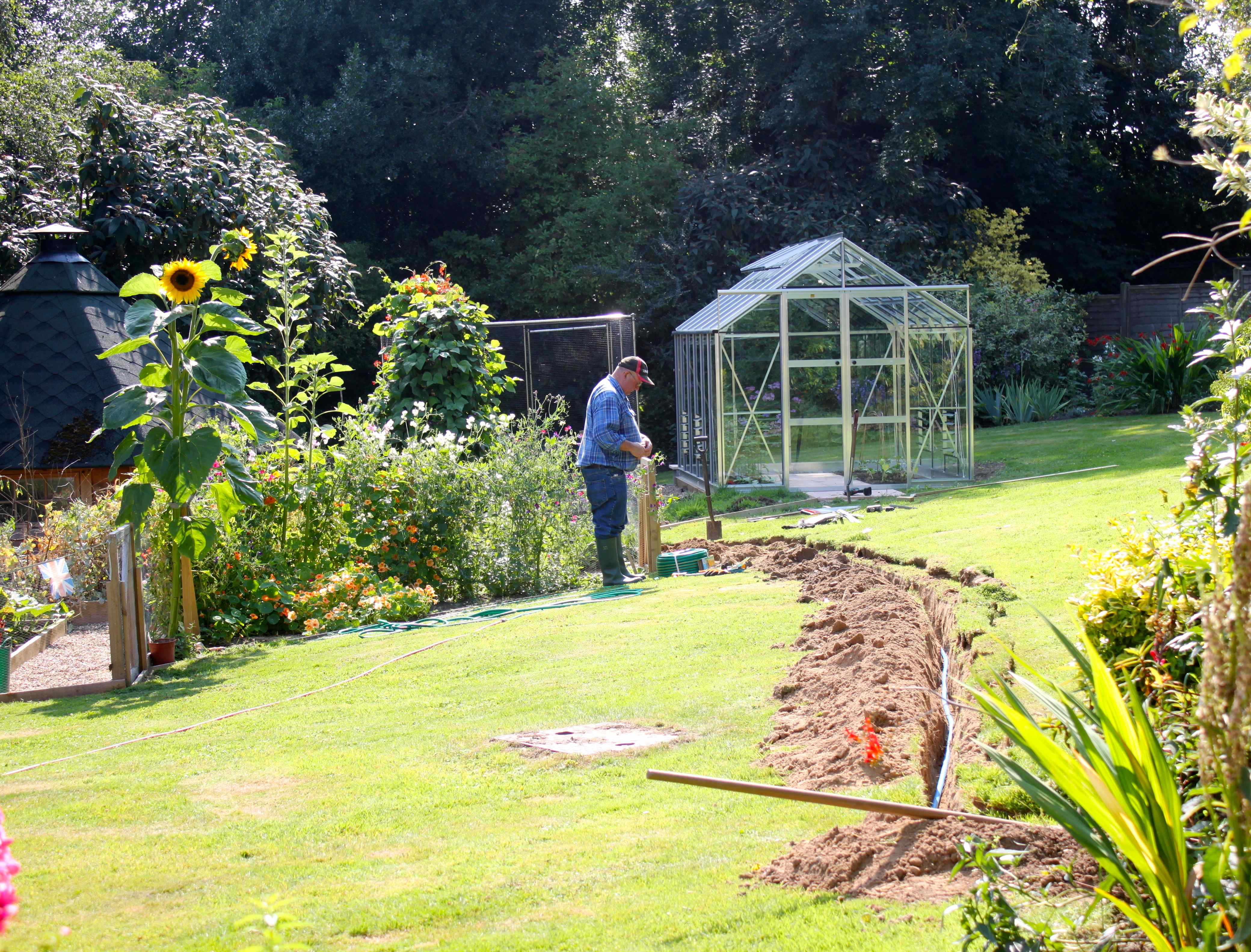 George and Dan arrived at 6.30am (truly!) to lay a water pipe through the garden so I can have a tap nearer the greenhouse, veggie patches and huge flower bed at the back of the garden. I am really pleased with my new tap and new hose.