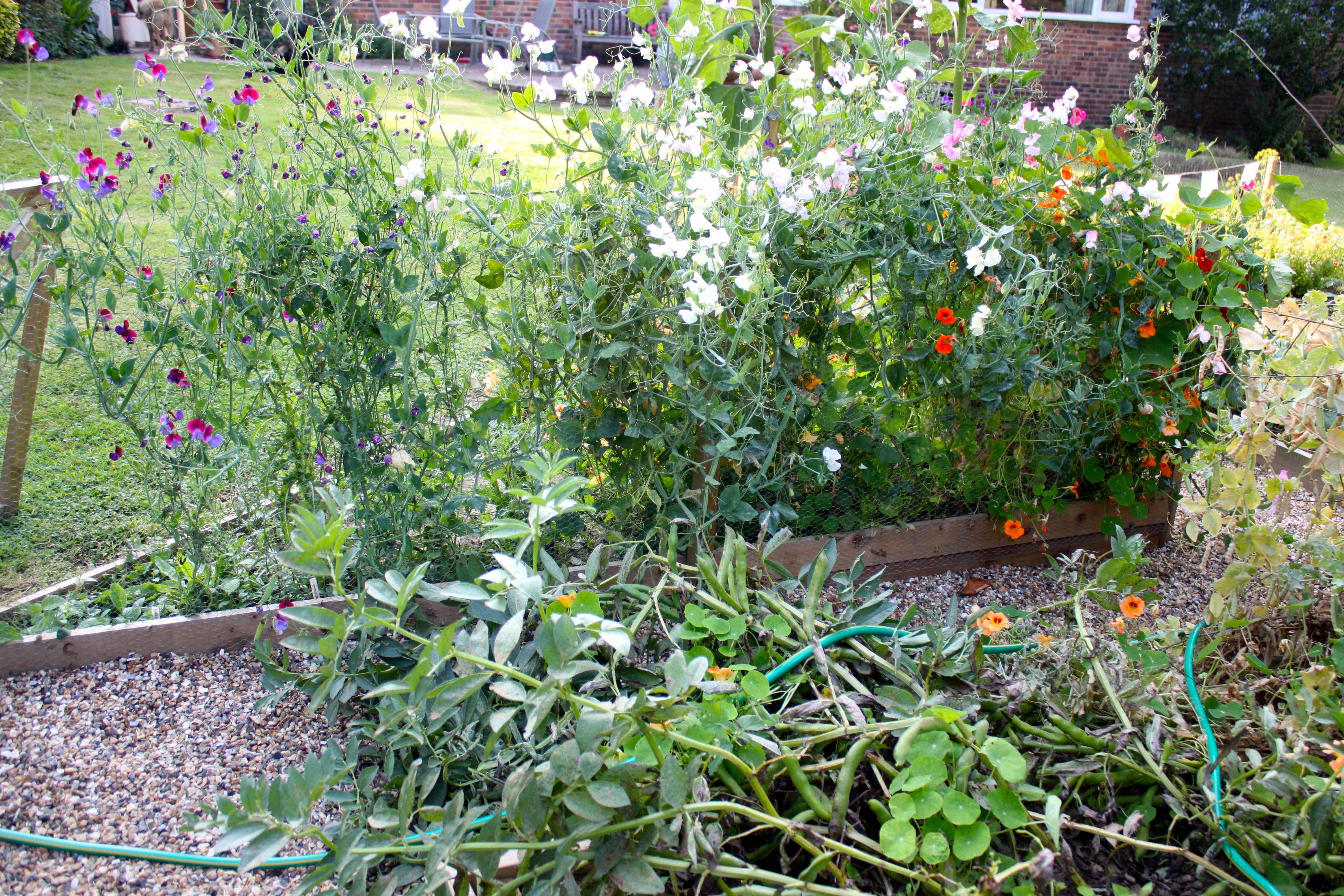 It was very pleasant sitting outside, enjoying the scent of the sweet peas, peacefully picking and shucking.