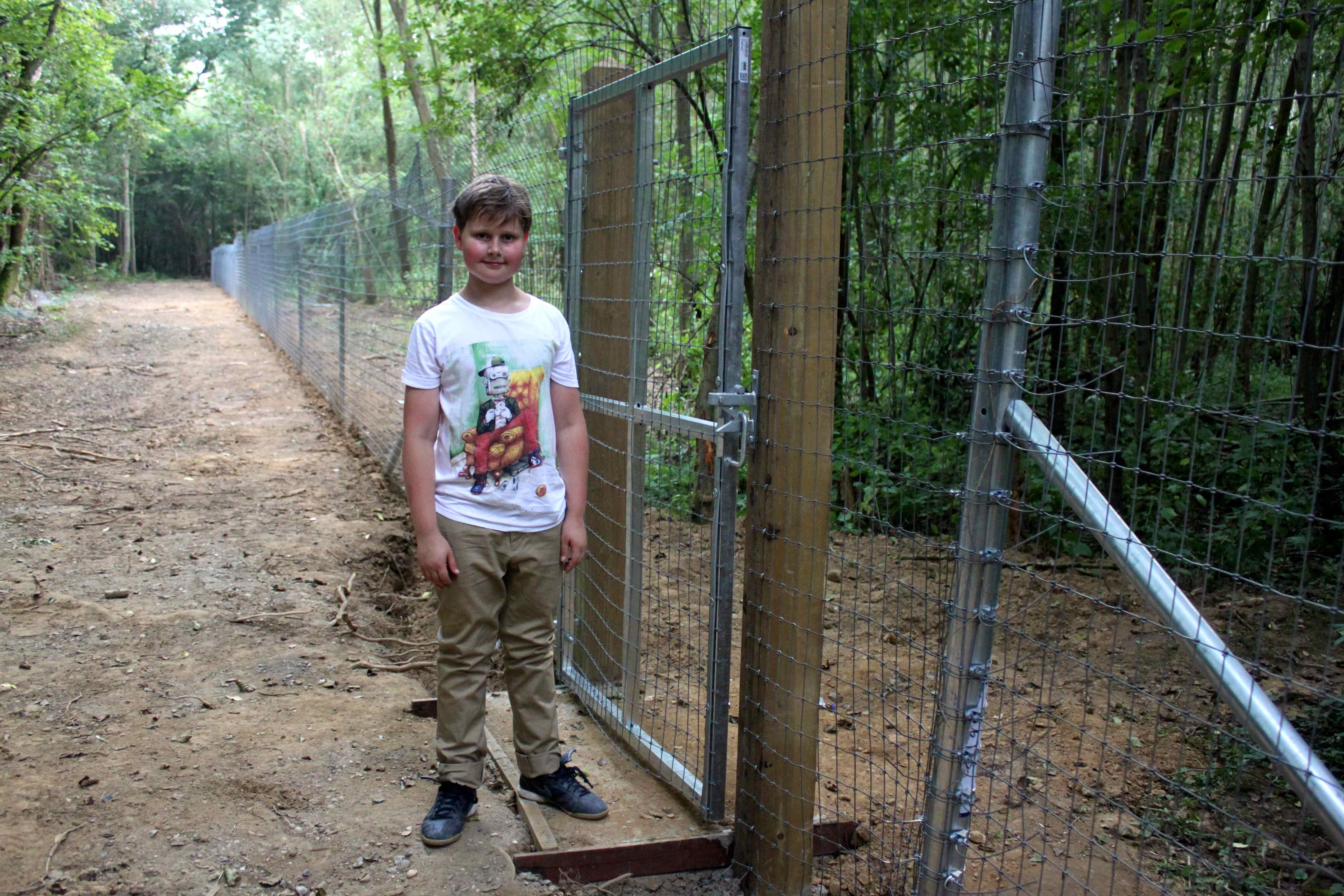 We kept going until we came to another fence. Somedays it may be tempting to lock him up but not today.