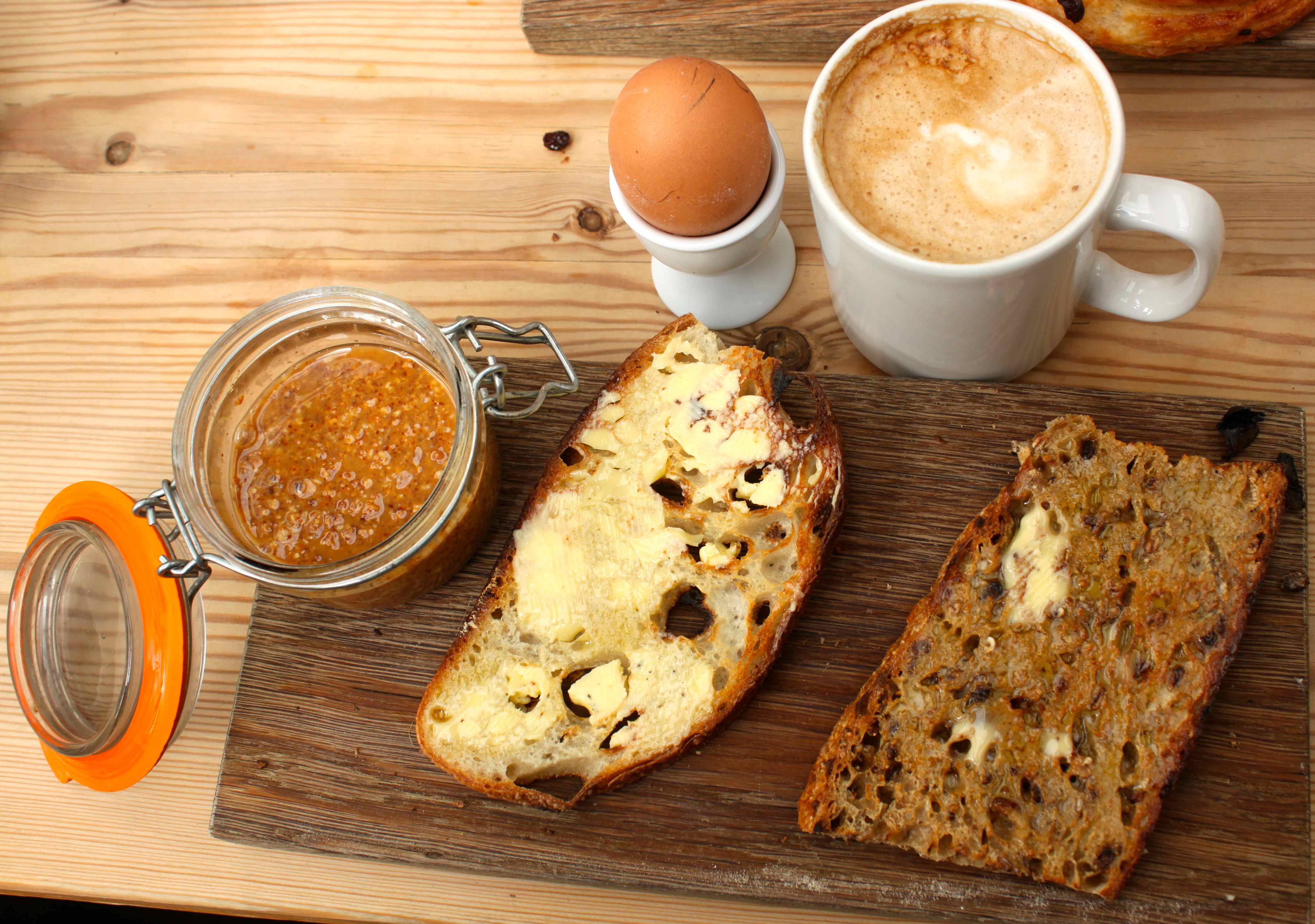 Harvey and I feasted on toast and a boiled egg in the Town Mill Bakery for breakfast.