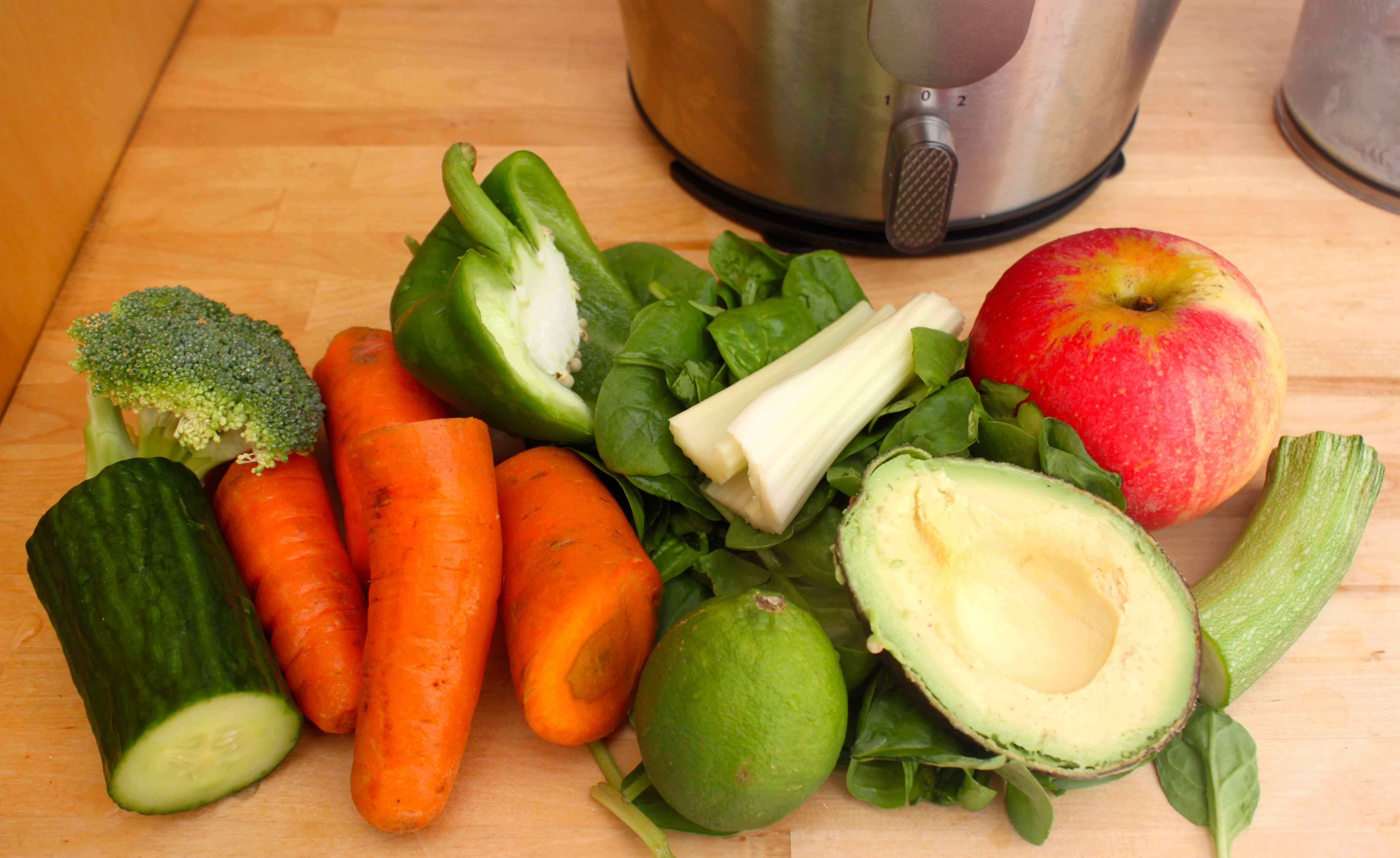 You juice everything except the avocado and then blend the juice with the avocado and ice. Adding the avocado is genius because it makes it taste thick and creamy and really helps keep hunger at bay.