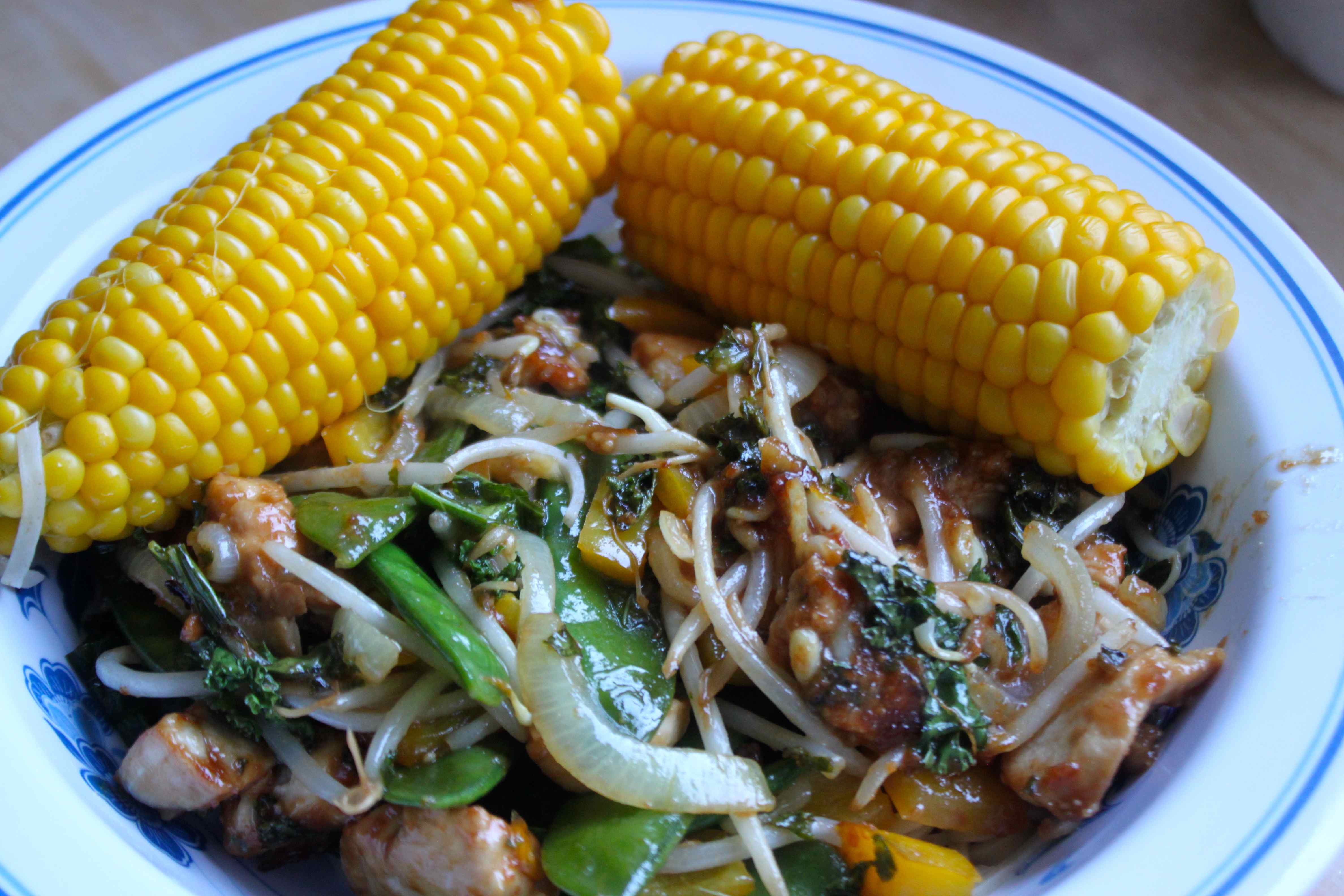 One of the hardest things about juicing is having to cook for the Little Fella. Tonight I made him stir fried chicken with onions, kale, mange tout, bean sprouts and yellow pepper with sweetcorn and wholewheat noodles. I flavoured the stir fry with garlic, soy sauce, peanut butter and honey. It smelt fantastic and I would have loved to eat it but I resisted. Luckily he ate it all so there were no leftovers to tempt me :-).