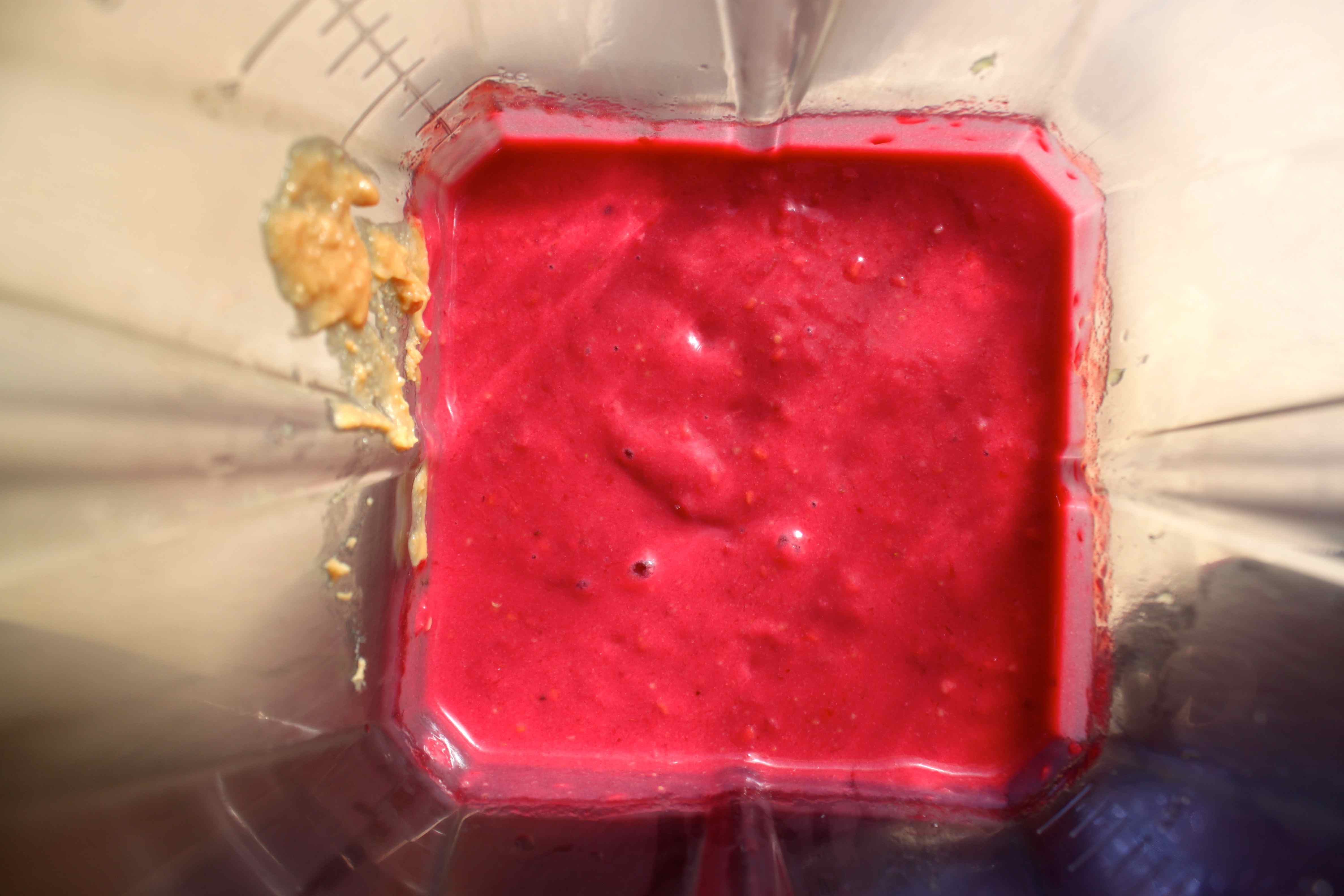 I blended all the raspberries with 2 tbsp peanut butter and then added 4 frozen bananas.