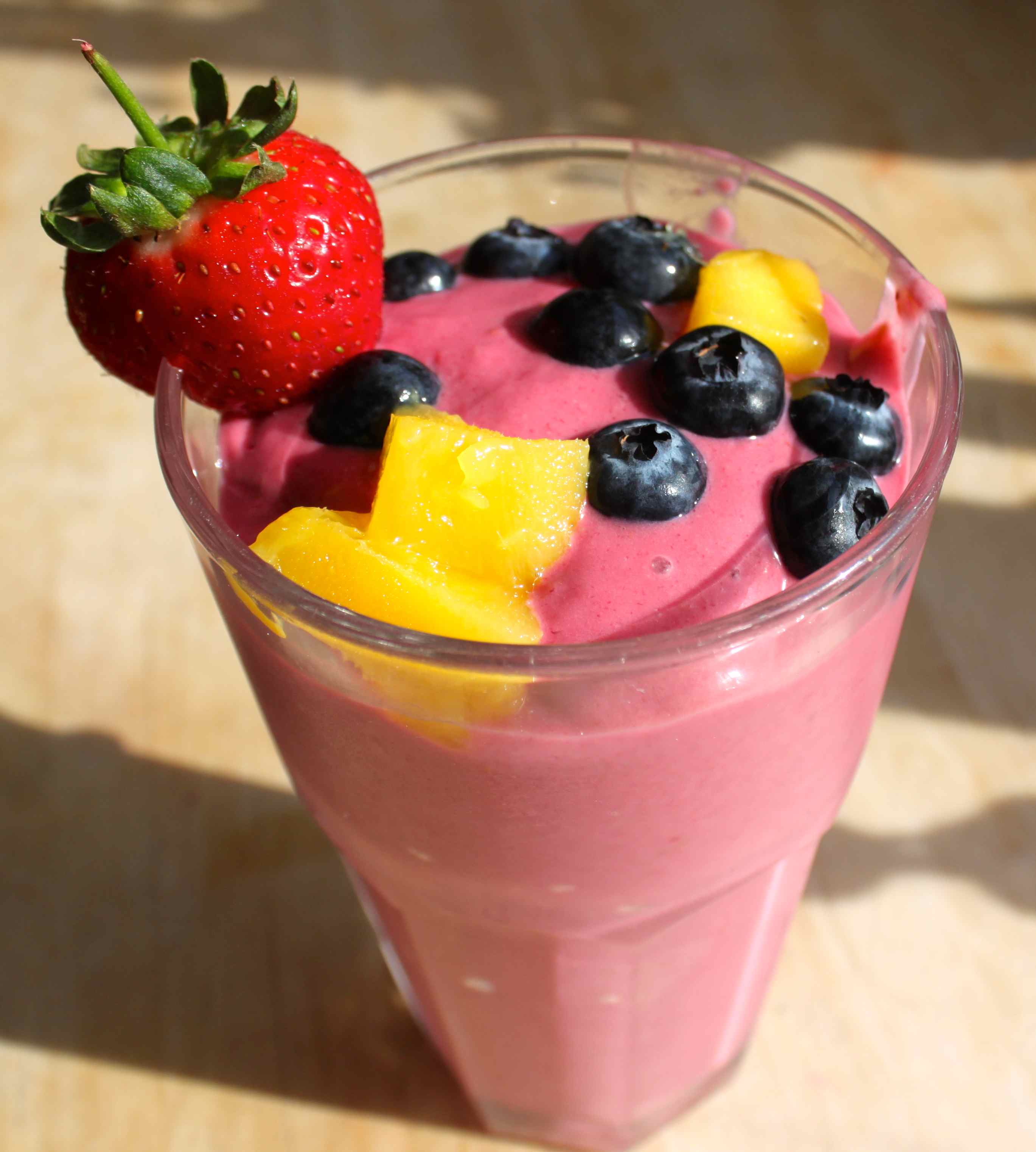 Served with blueberries, mango and a strawberry. Harvey and I loved these.
