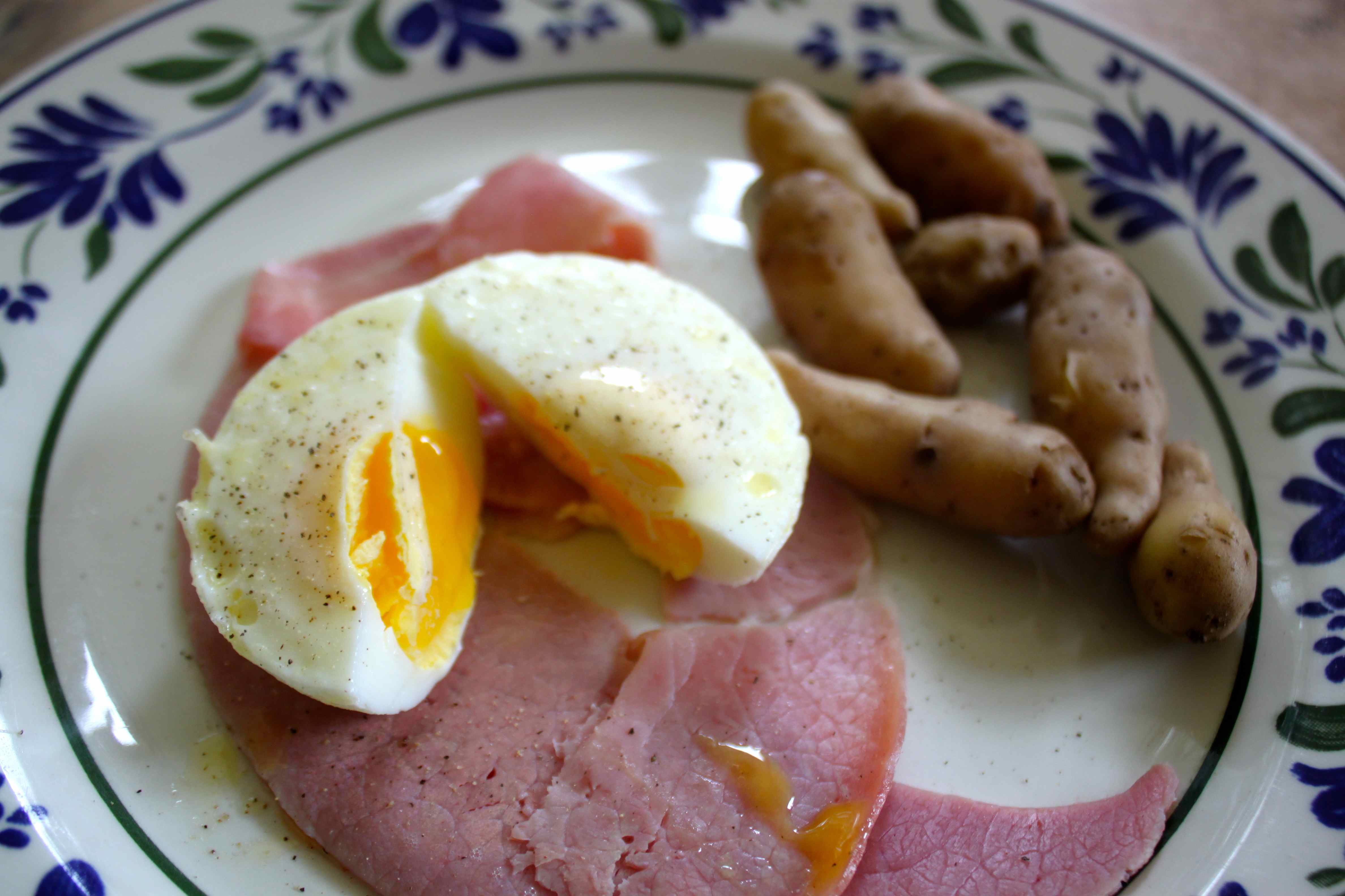 We were planning a late lunch so I made us all a more substantial breakfast than usual with home grown potatoes, ham and a poached egg.