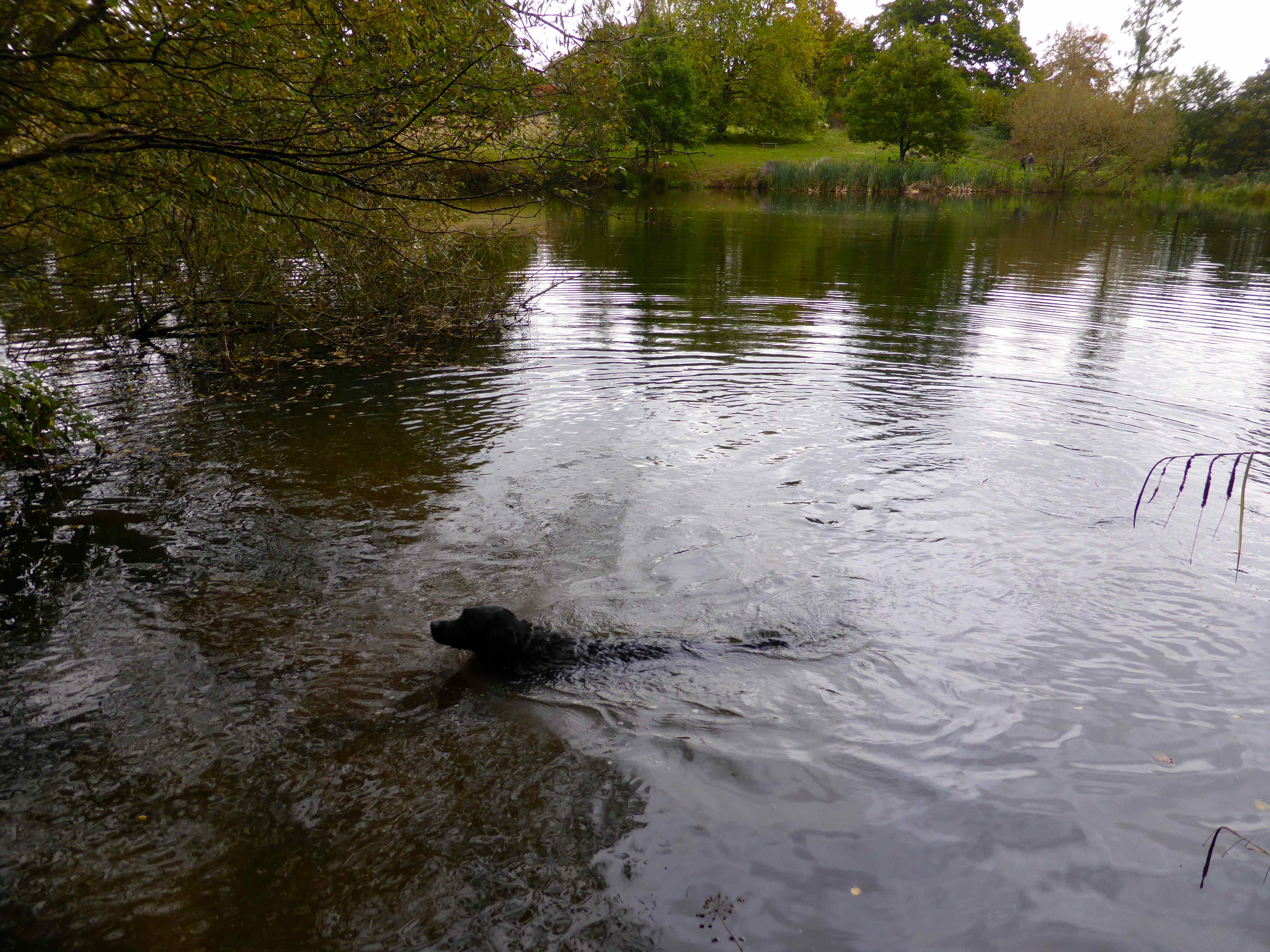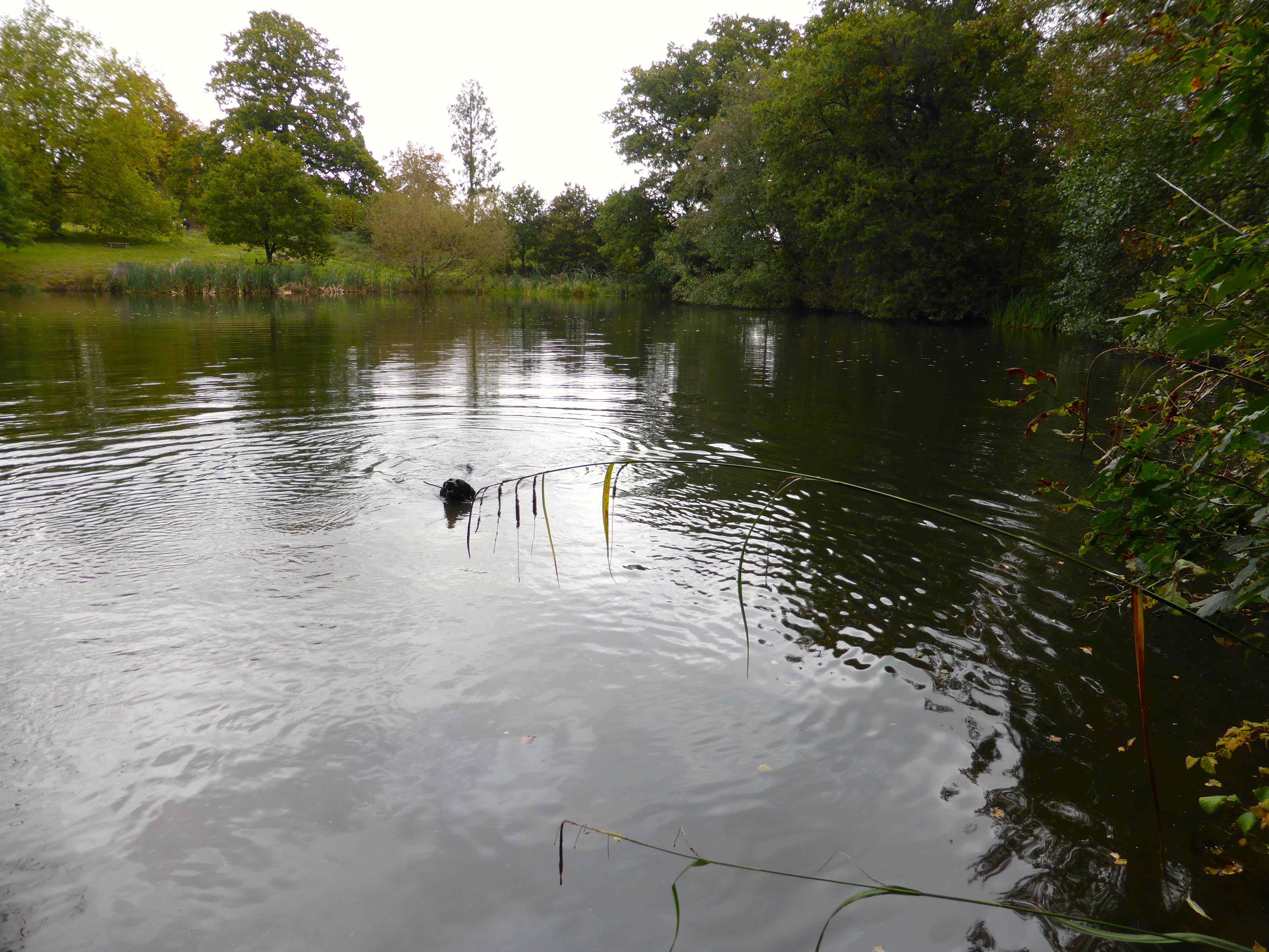 Milton quite enjoys a swim and enjoyed swimming in the lake.