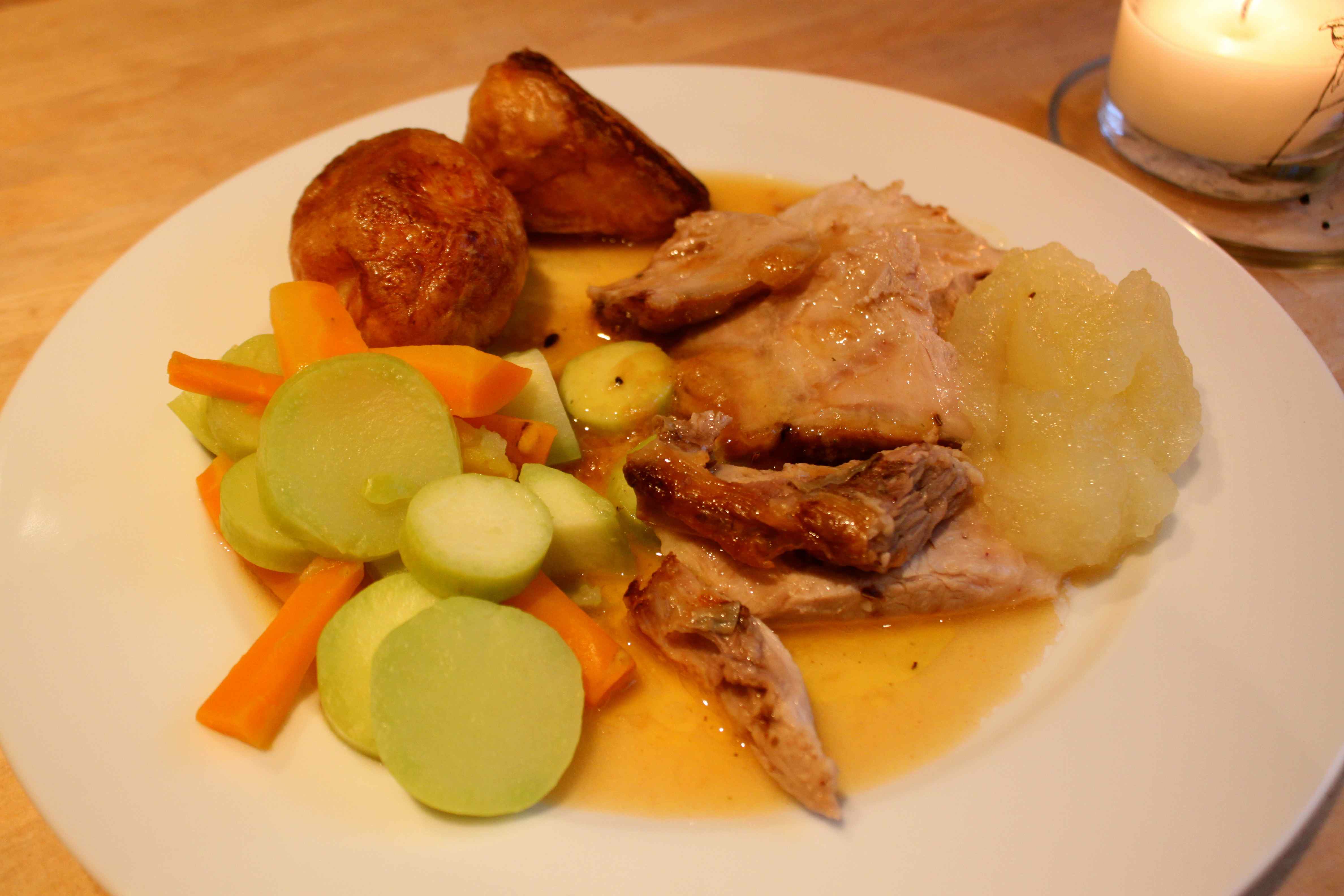 The pork was not as tender as I was hoping for either so that was disappointing. The apple sauce and vegetables were good.