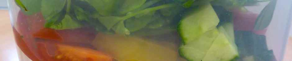 Quinoa, chickpeas, celery, red and yellow tomatoes, cucumber, sugar snap peas, watermelon and a variety of leaves. I am getting used to salad without a dressing to save calories but it was a bit boring.