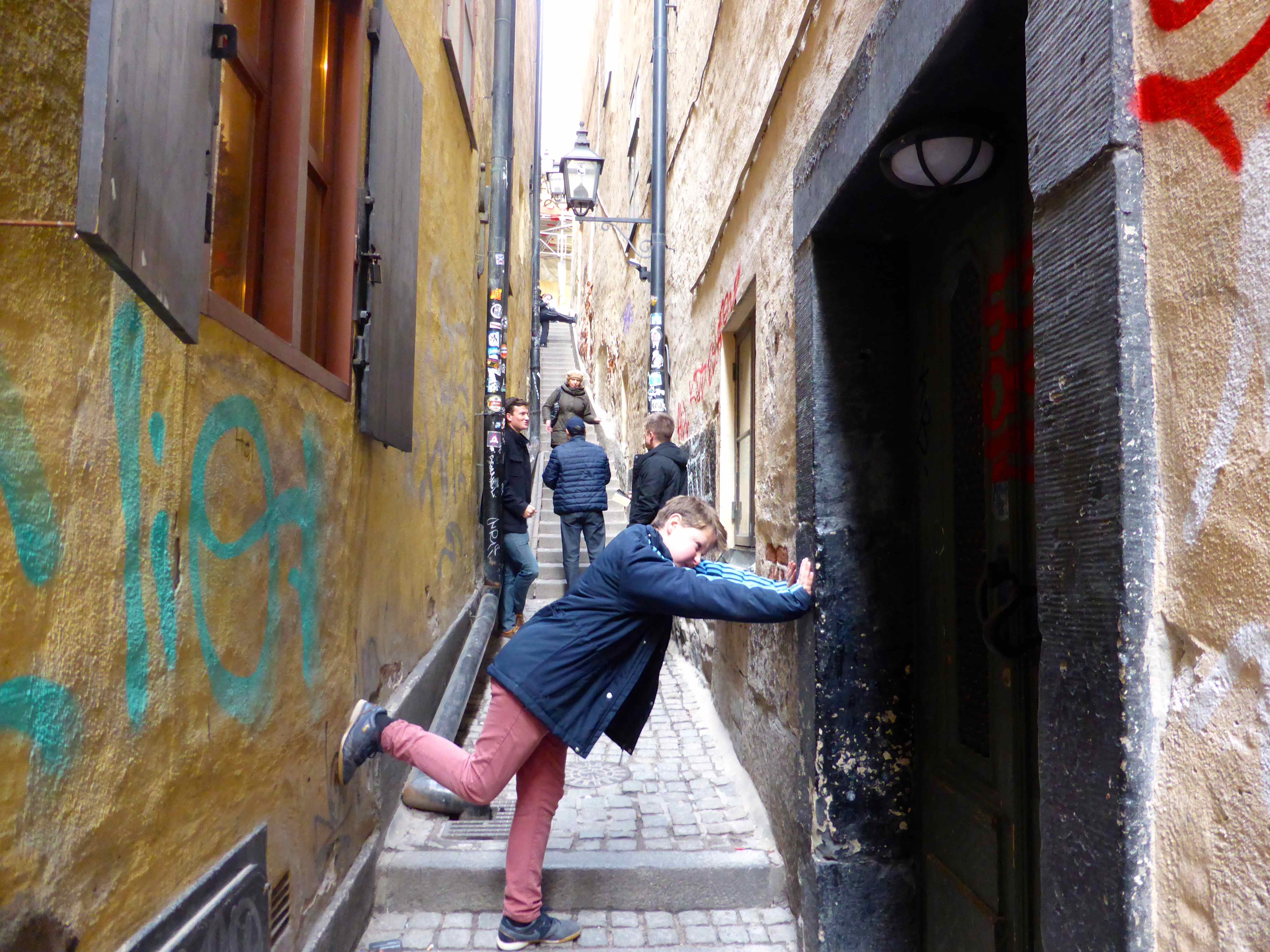 This is Marten Trotzig’s Grand, the narrowest street in Stockholm and only 90cm across.