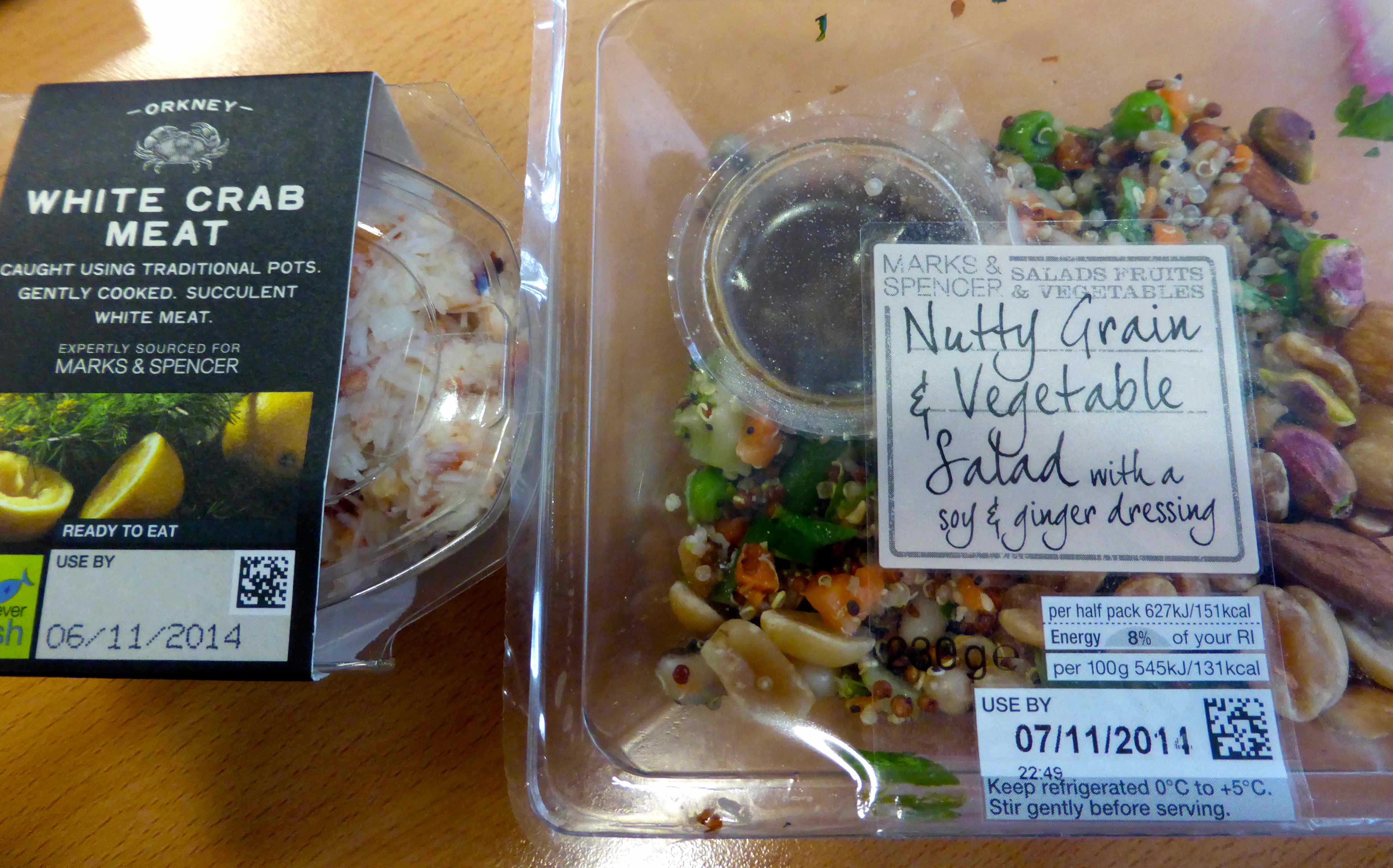 At M&S I thought I would try a Nutty Grain and Vegetable Salad which I have not had before and a small pot of white crab meat.
