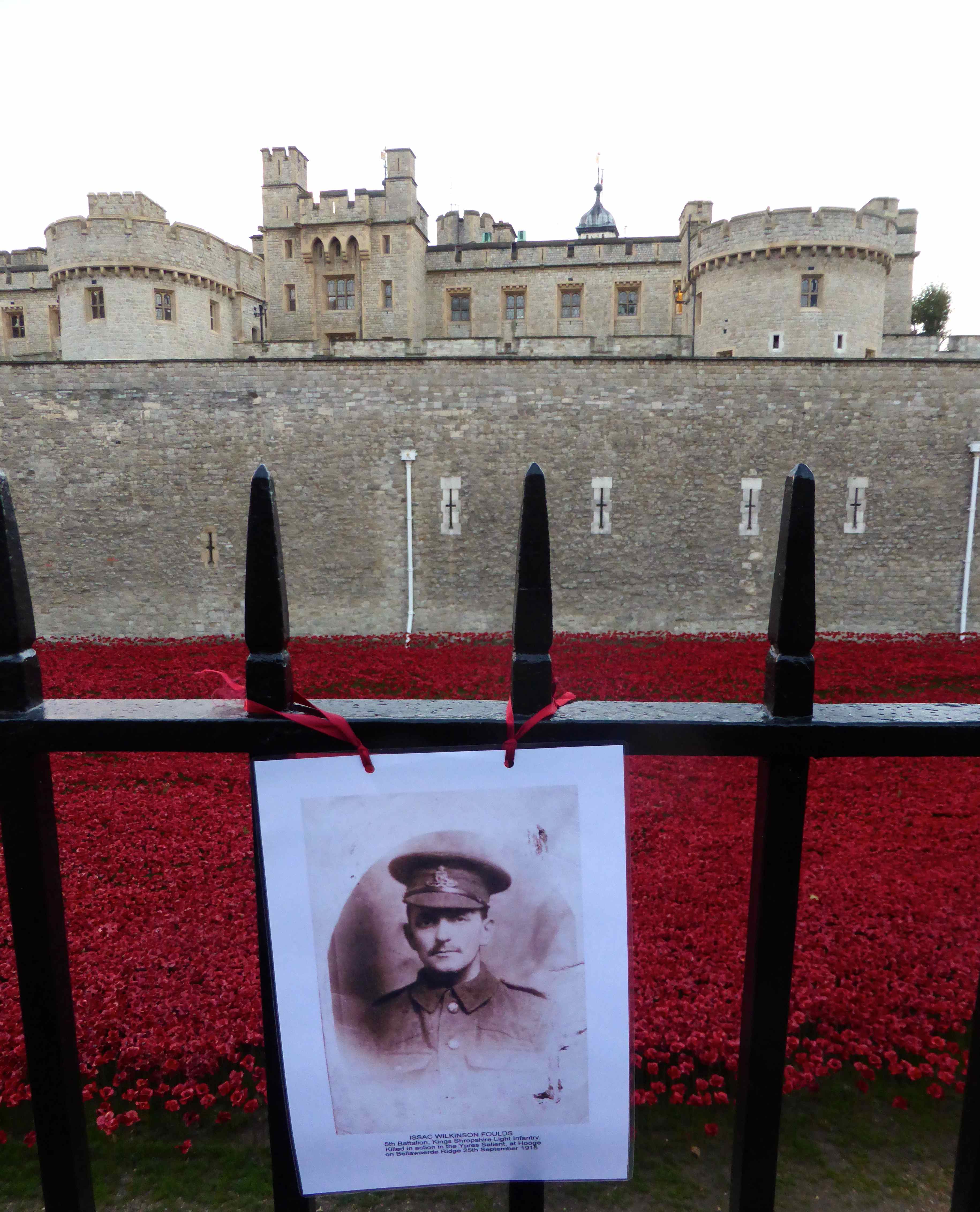 I don’t know of anyone in my family who has died in battle or anyone in photos such as these.  But seeing their young faces and thinking about what they possibly experienced with the numbers of their deaths so visually expressed by this wave of poppies was very powerful.  To think each poppy represented a person like this young man who died at Ypres and for each person who died, there was the devastation for the friends and families they left behind.Ypres soldier I was relieved I was able to walk away and experience another sunrise, unlike those who are represented by the poppies.  Alongside the sadness I felt for those who died, I was also in awe at the genius of the artists who created this incredible installation.  Powerful stuff.Tower of London 1 After all that I had a day of work to get through!