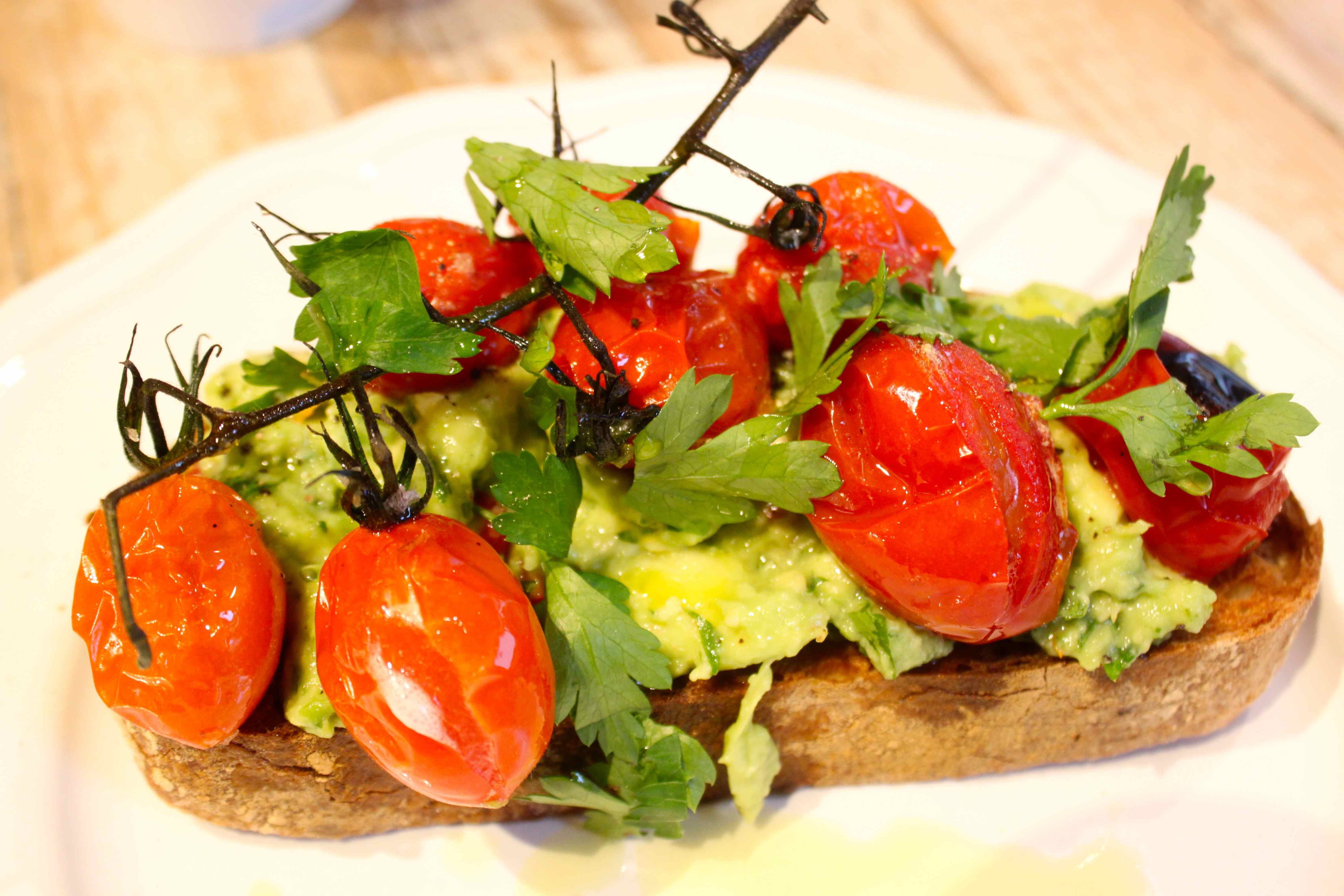 I had roasted cherry tomatoes and mashed avocado on sourdough which was delicious. I made myself one of these yesterday at home with coriander on it as I had enjoyed this one so much.