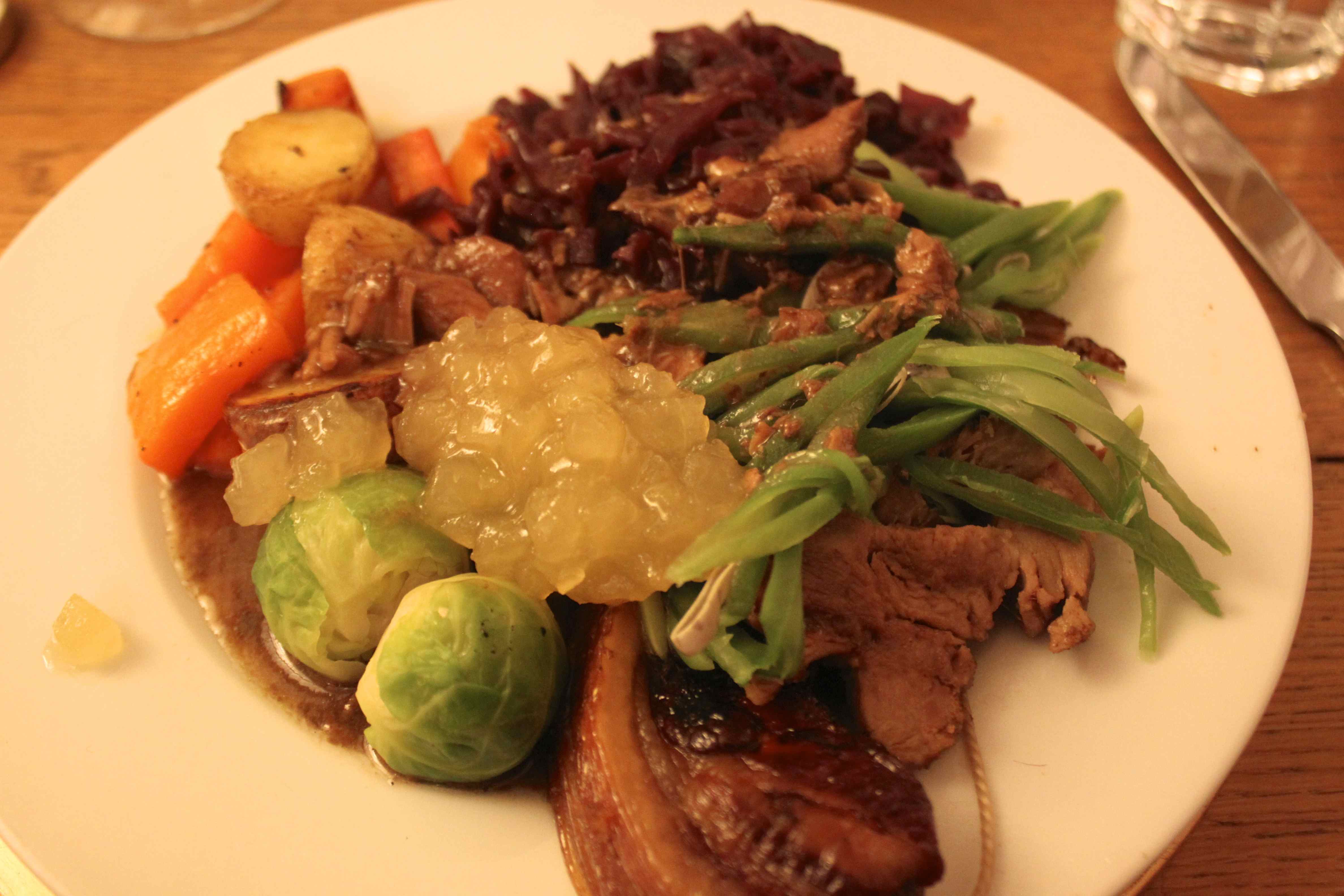 What a feast! We dined on Lucy’s slow roast pork which was fantastic, served with brussel sprouts, carrots, red cabbage, runner beans, roast potatoes and butternut squash and apple sauce. It was delicious. Really really good.