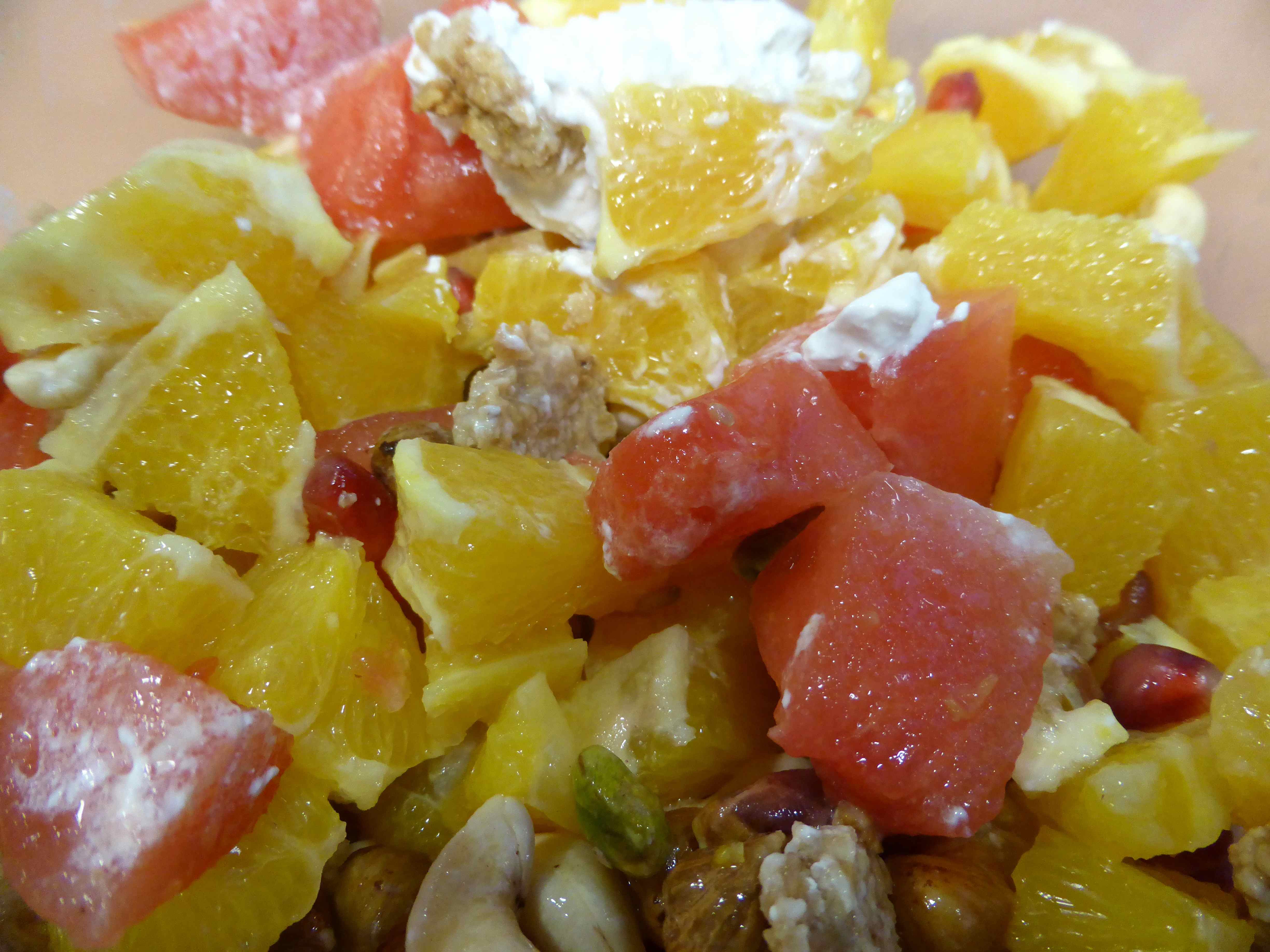 I had an orange, some watermelon. pomegranate, a heaped spoonful of Co Yo, some granola and a 50g bag of raw mixed nuts. It kept me going for hours.