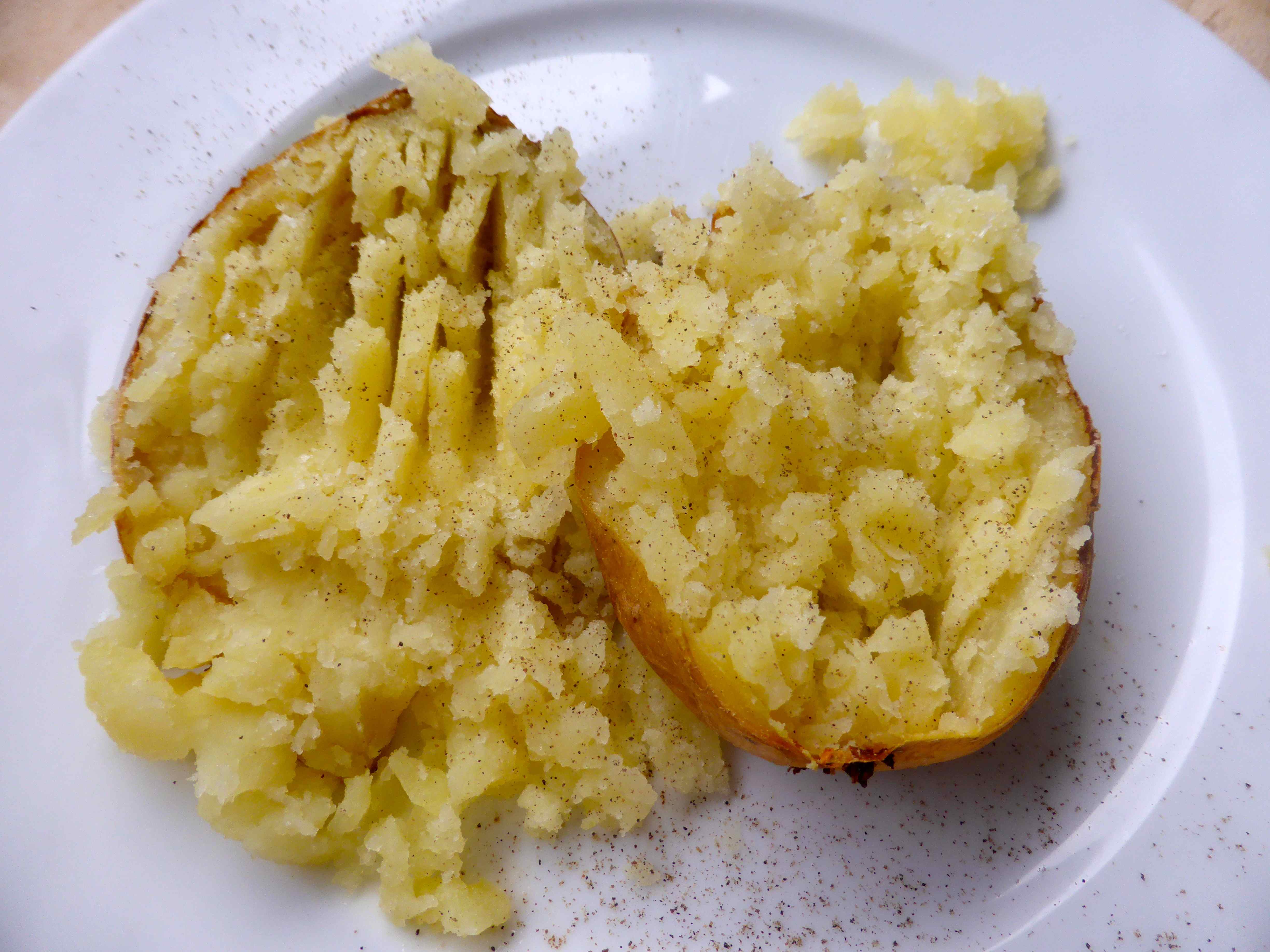 I was busy working today so lunch was very easy. One jacket potato with salt and pepper only, absolutely no butter at all.