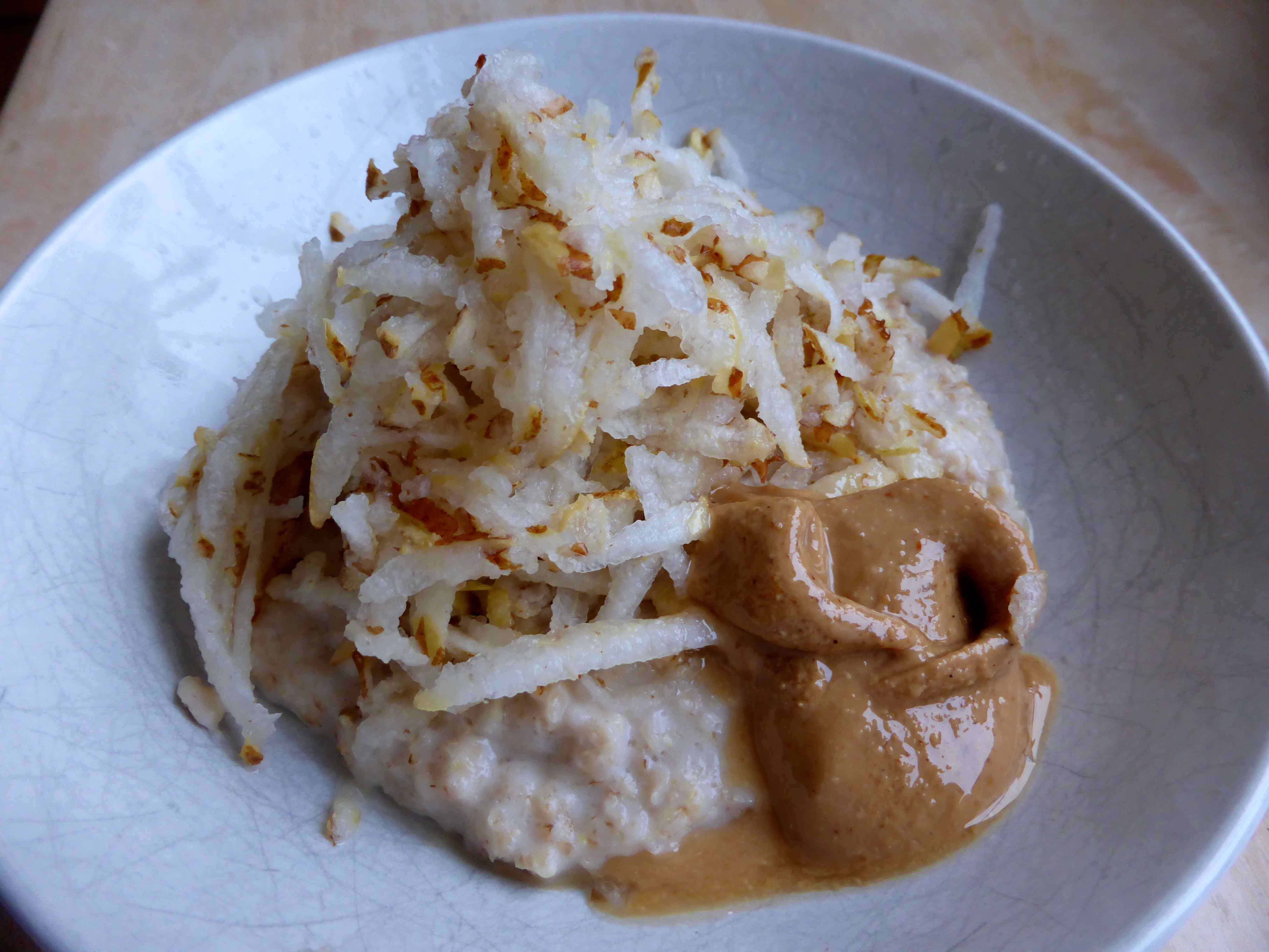 I enjoyed my breakfast today.pear and nut butter 1/2 a cup of oatmeal made in to porridge with 1 cup of macadamia nut mylk, topped with a grated pear and 1 tbsp mixed nut butter.  A modest portion and all very delicious.porridge and pear I met Lucy for a coffee in Cocolicious after seeing the Doctor.  They made me a very good latte, made with almond milk.  It was thick and frothy like a dairy latte.  Cocolicious has a range of non dairy milks so if you are avoiding dairy and want a decent coffee, head over!