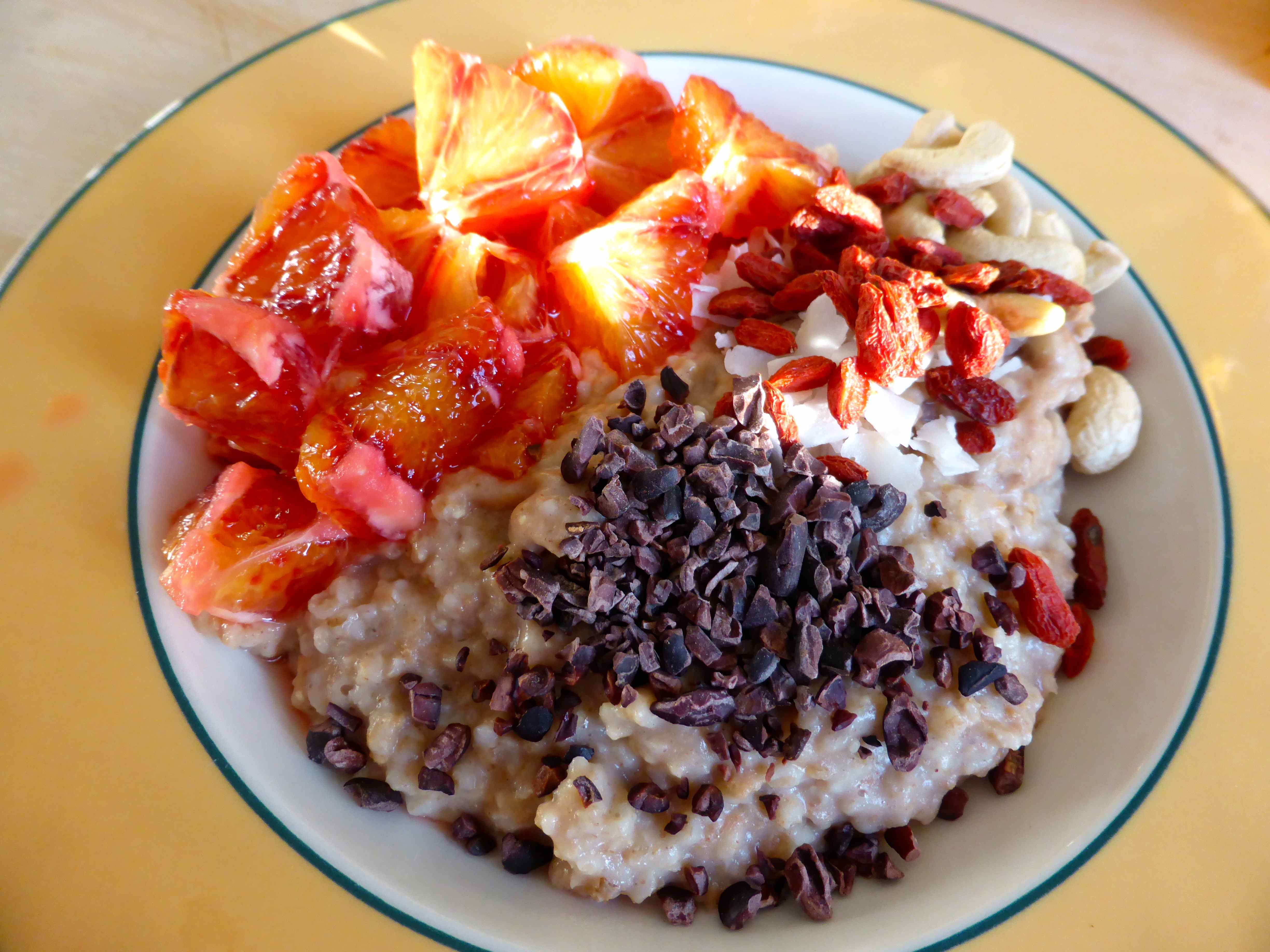 Lucuma and maca work well in a smoothie but not so well in porridge but the toppings were awesome, especially the blood orange.