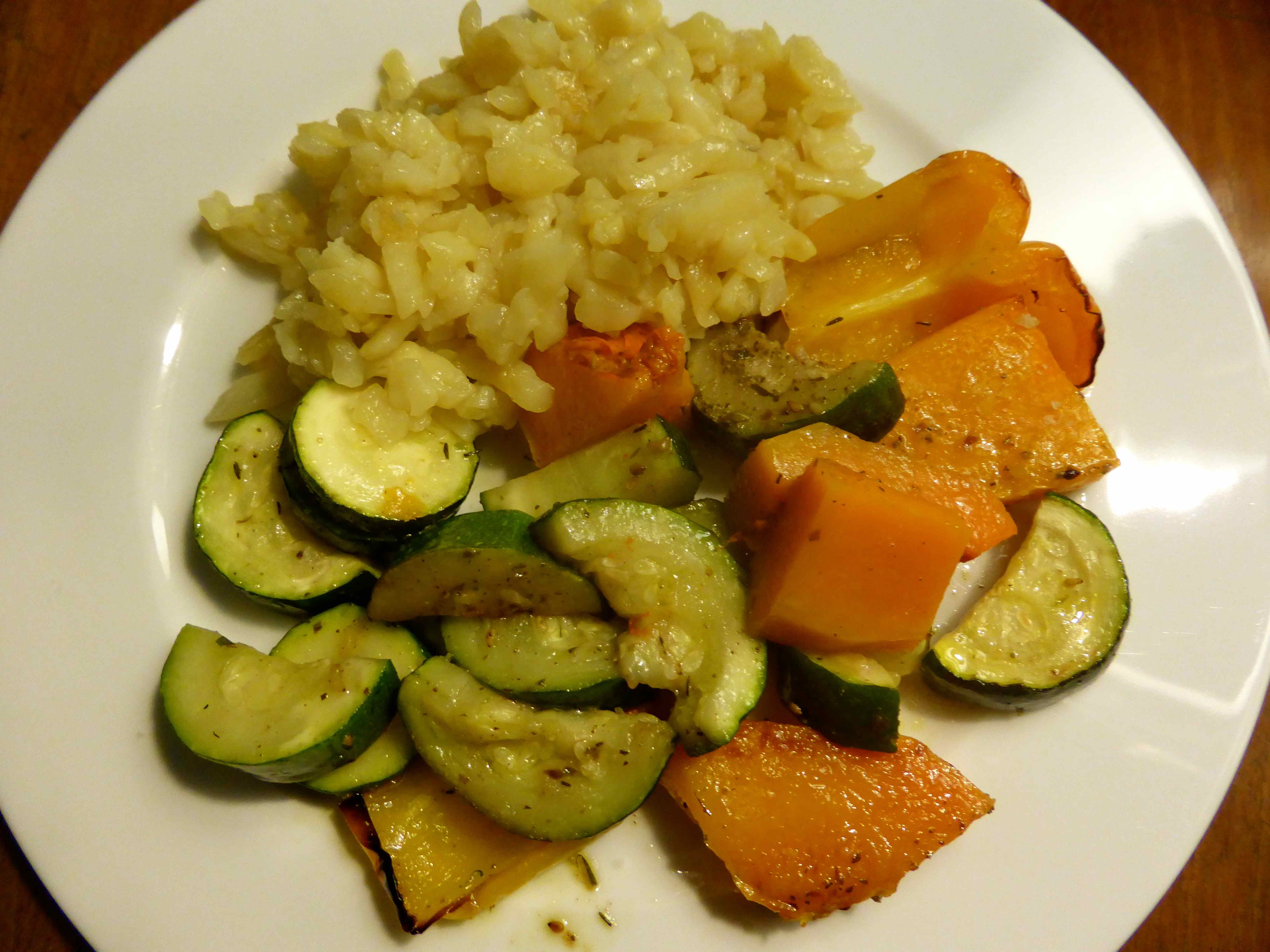 Rosti ( a Swiss style of grated potatoes) with some oven roasted peppers, courgettes and butternut squash. I roasted them with some olive oil, salt, thyme and z’atar. Simple but satisfying.