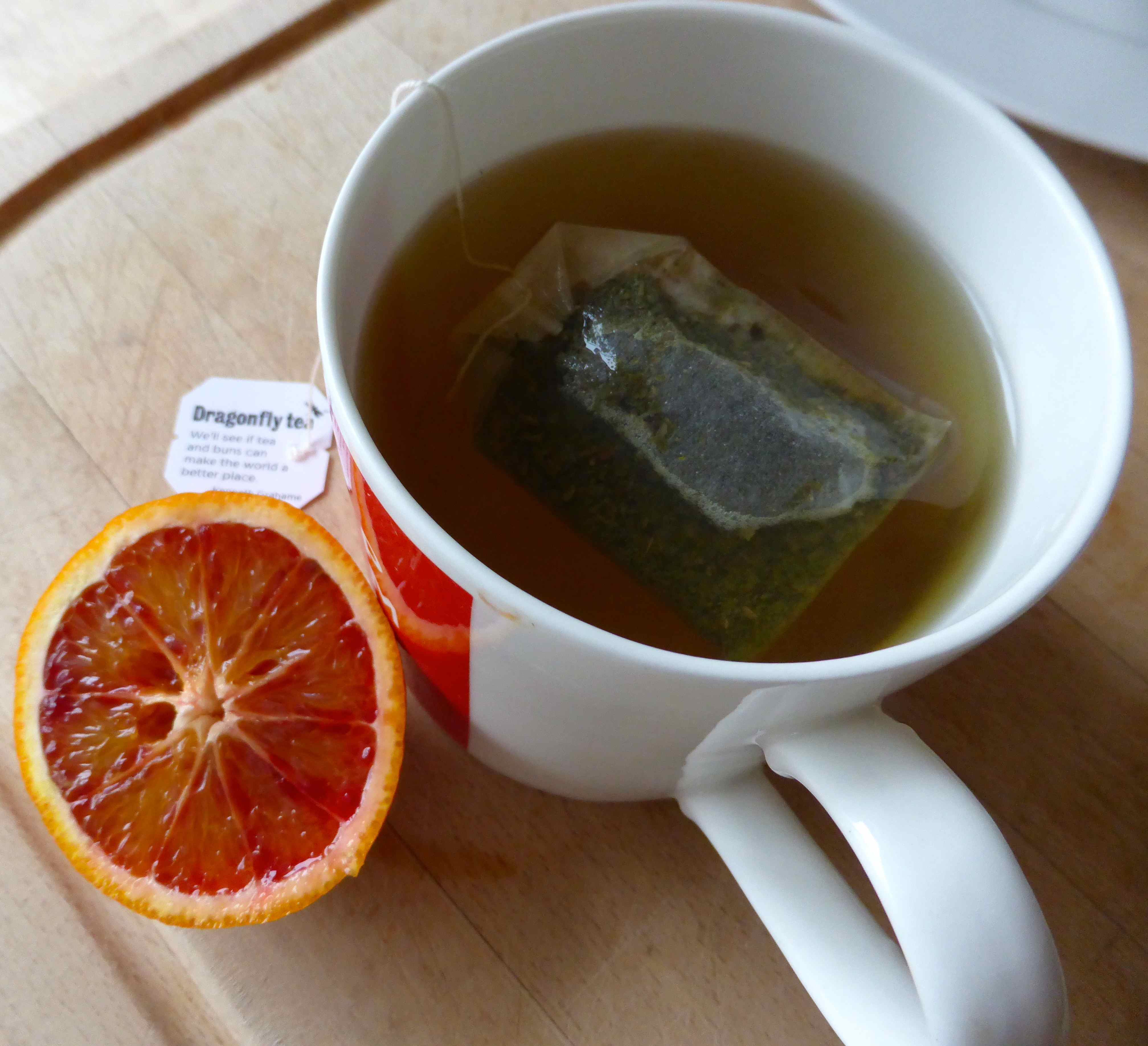 I snacked on half a blood orange and a mug of green tea late morning.