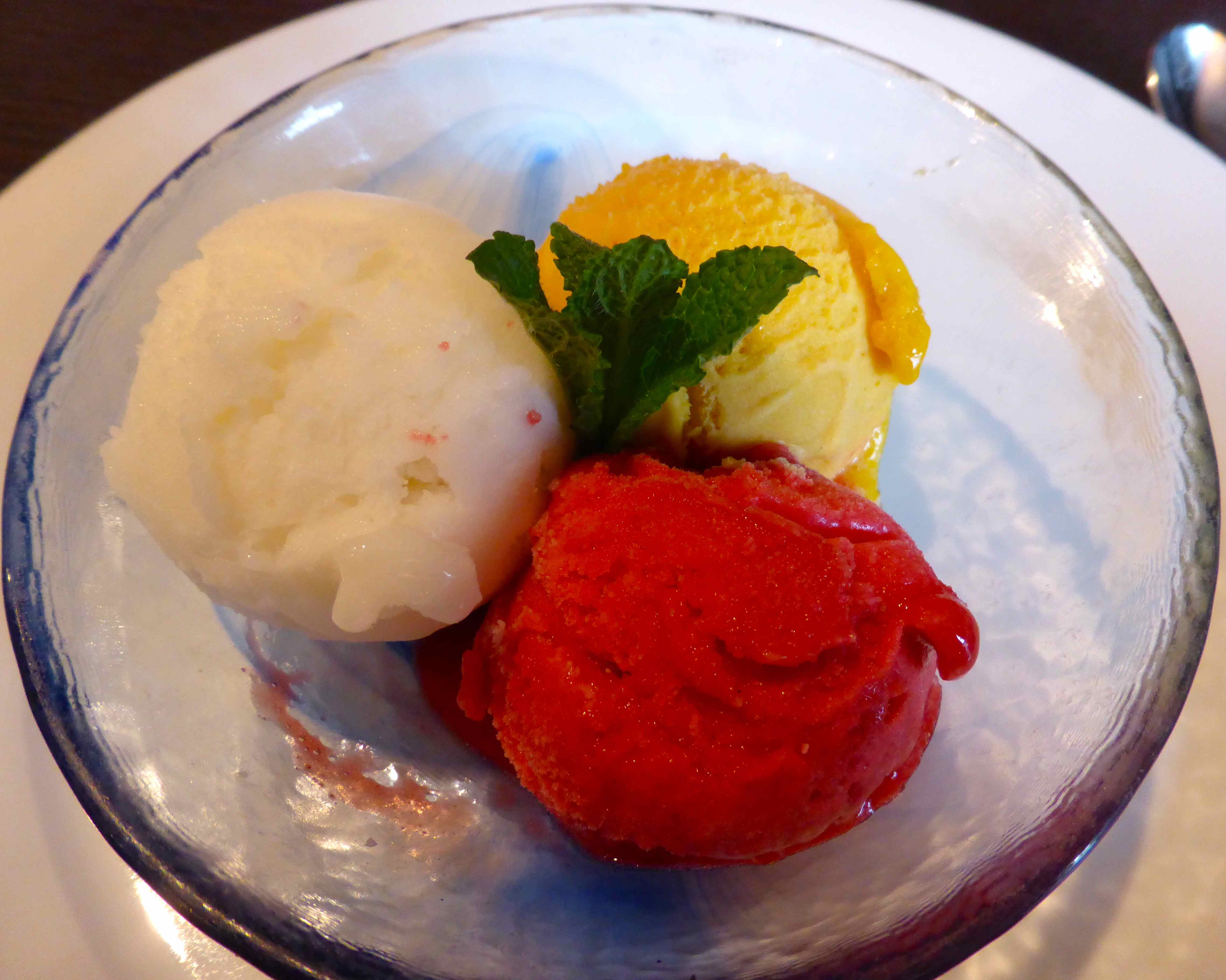 I did have this trio of sorbets for dessert and I enjoyed them too. I drank sparkling mineral water during lunch and ended with a double espresso.