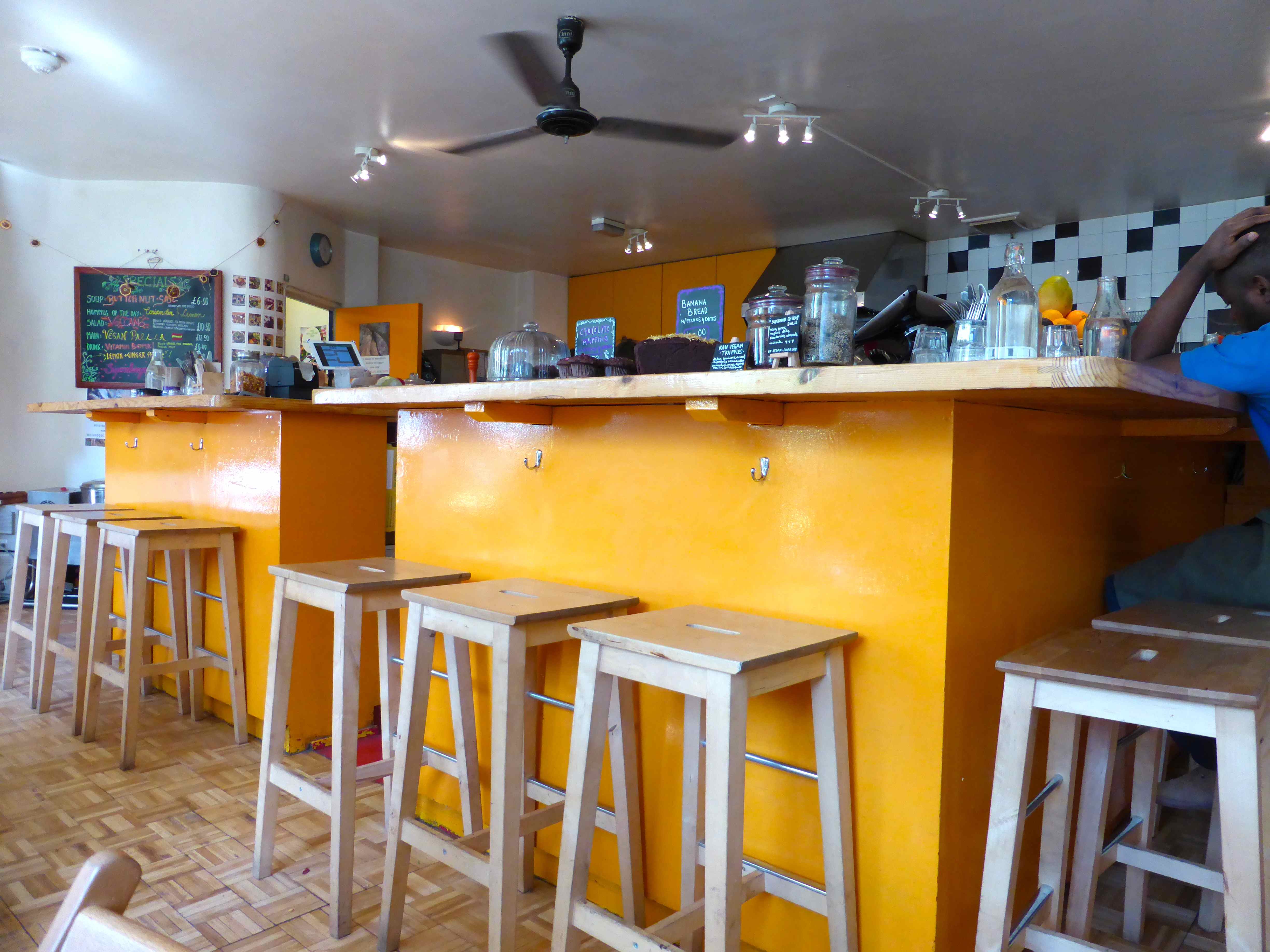 We went early so it was quite empty to start with but it soon filled up. All the action takes place behind the orange counter. Everything is cooked/chopped/prepared there so you can see your food being made if you sit at the counter.