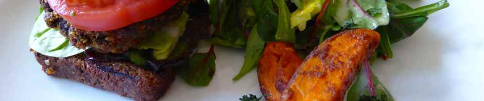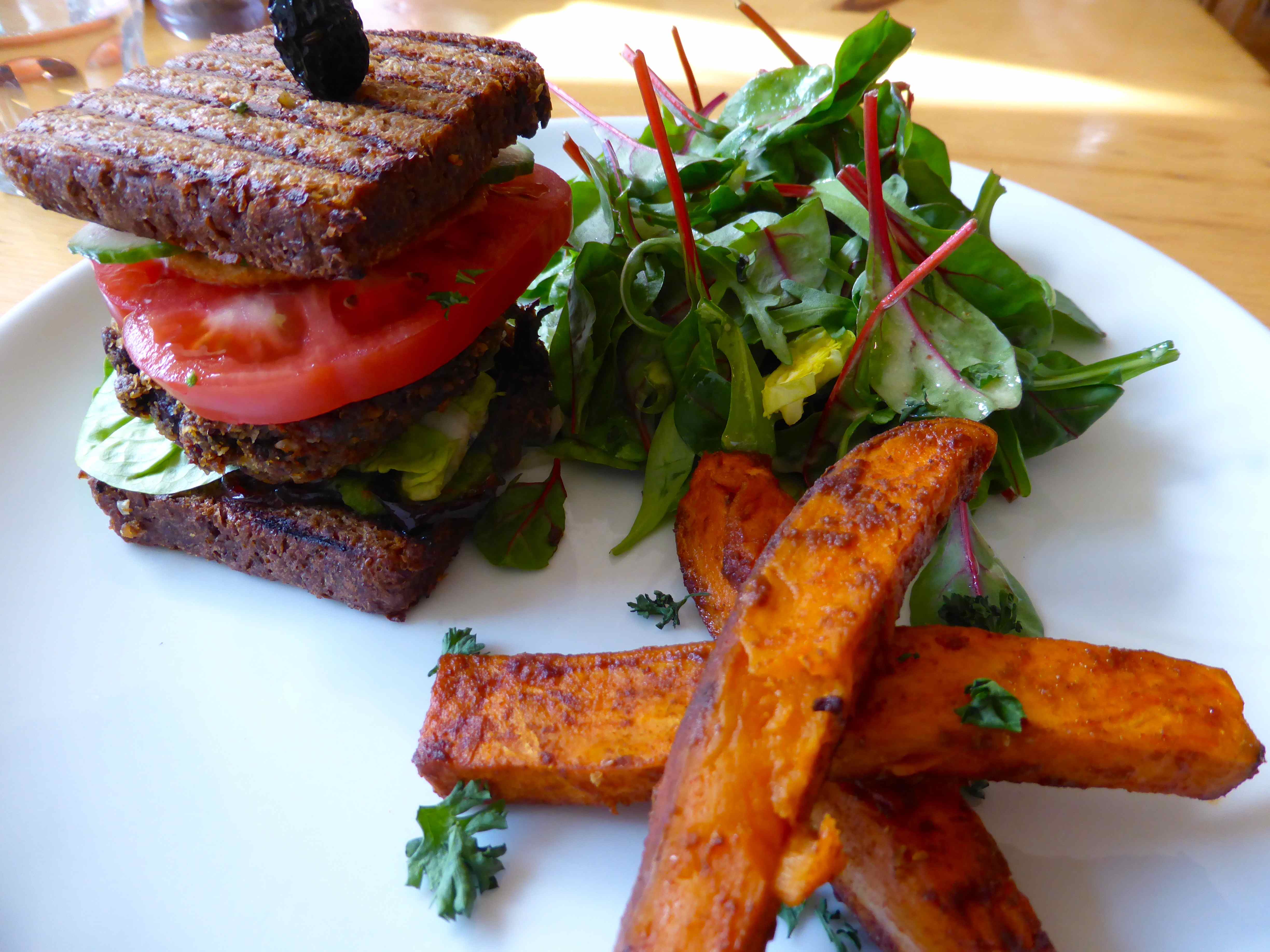 This is The Wild Burger. It is an olive and shitake mushroom burger in sprouted wheat bread.