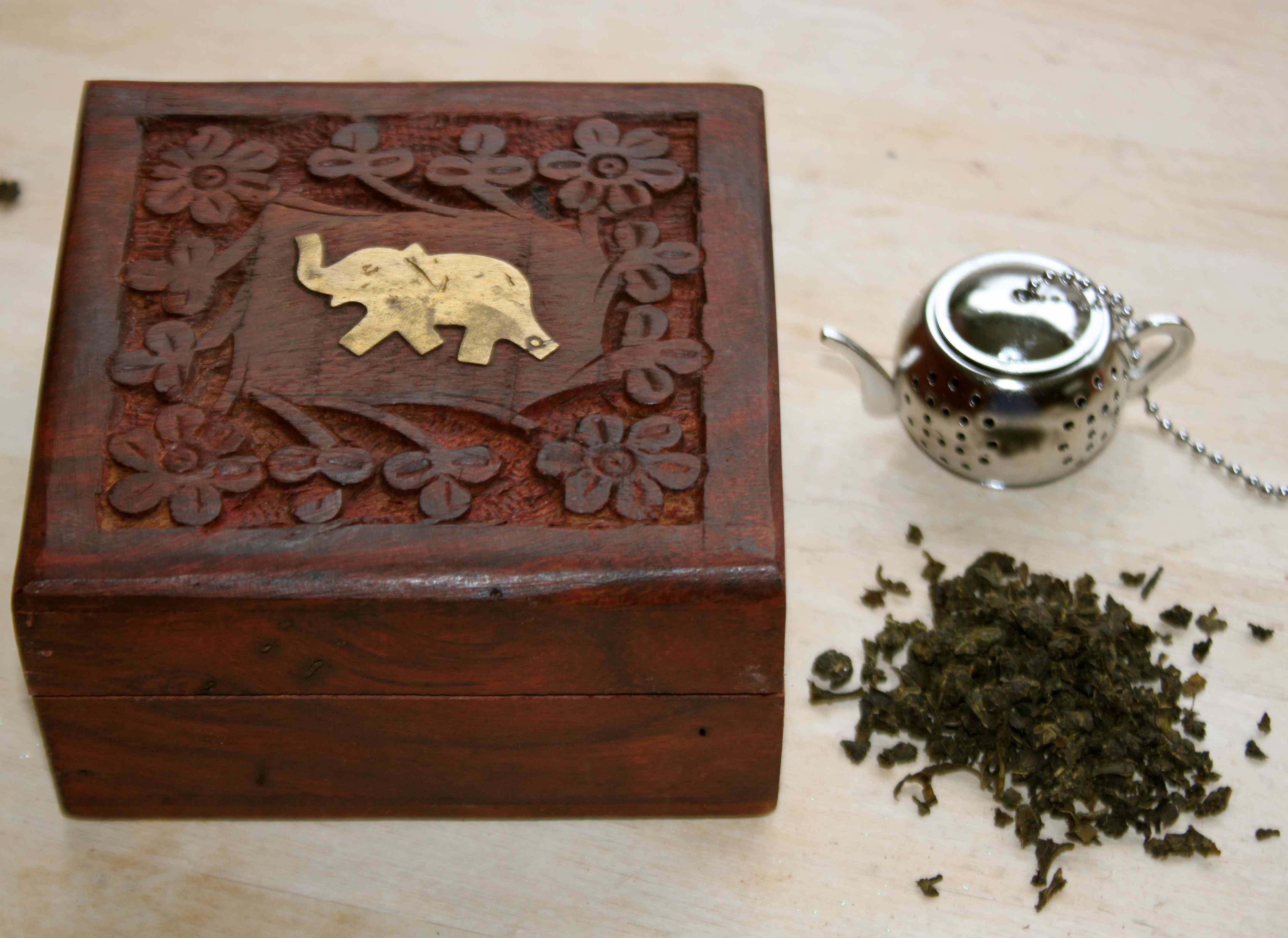 Lara bought me this cute little tea strainer which I used to make some green tea with the tea she brought me from a recent trip to India.