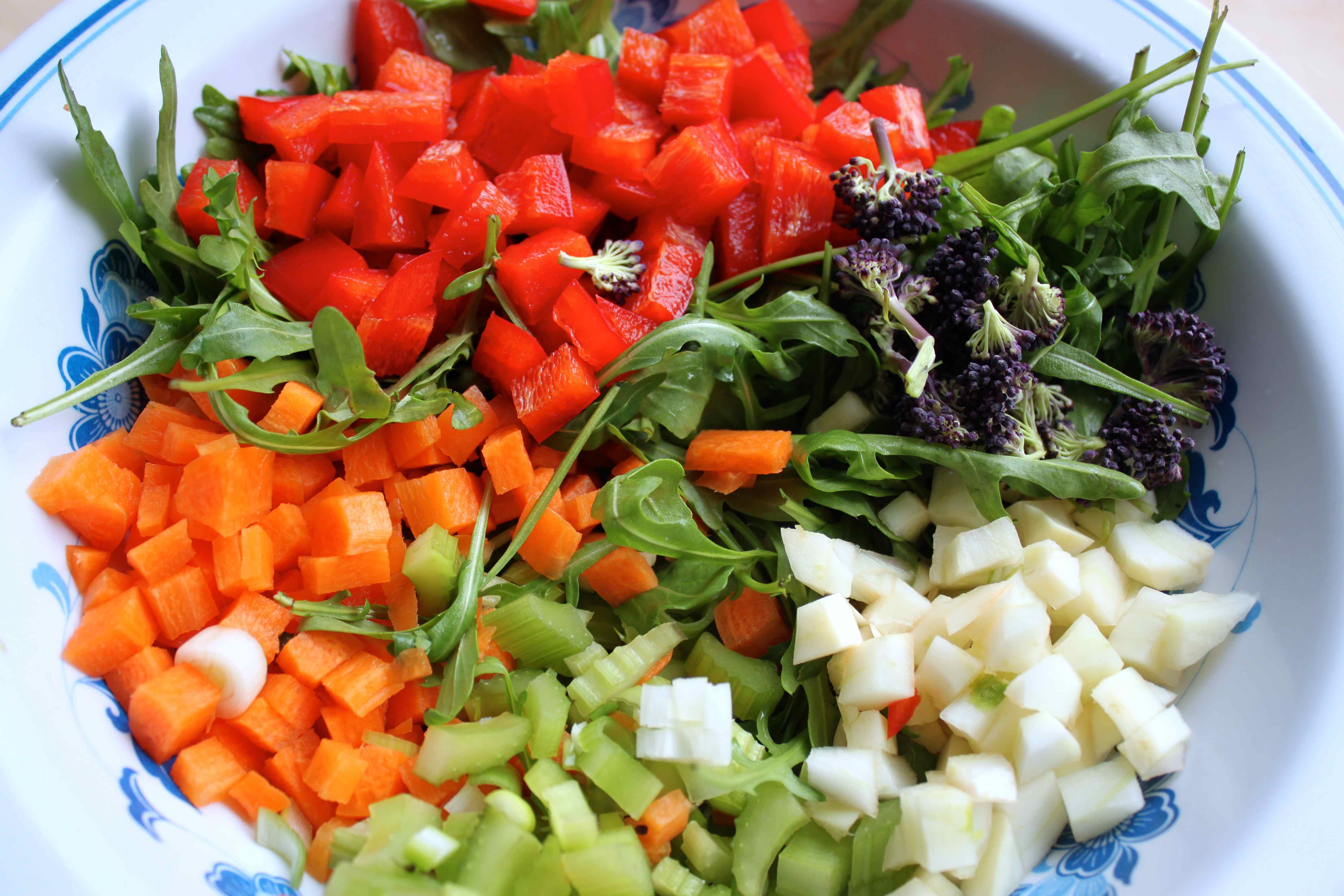 For lunch I enjoyed chopping lots of vegetables in to cubes. I was inspired by an Instagram account I follow, called ALKALINESISTER, to actually look up how to handle a knife like a chef. Such fun!