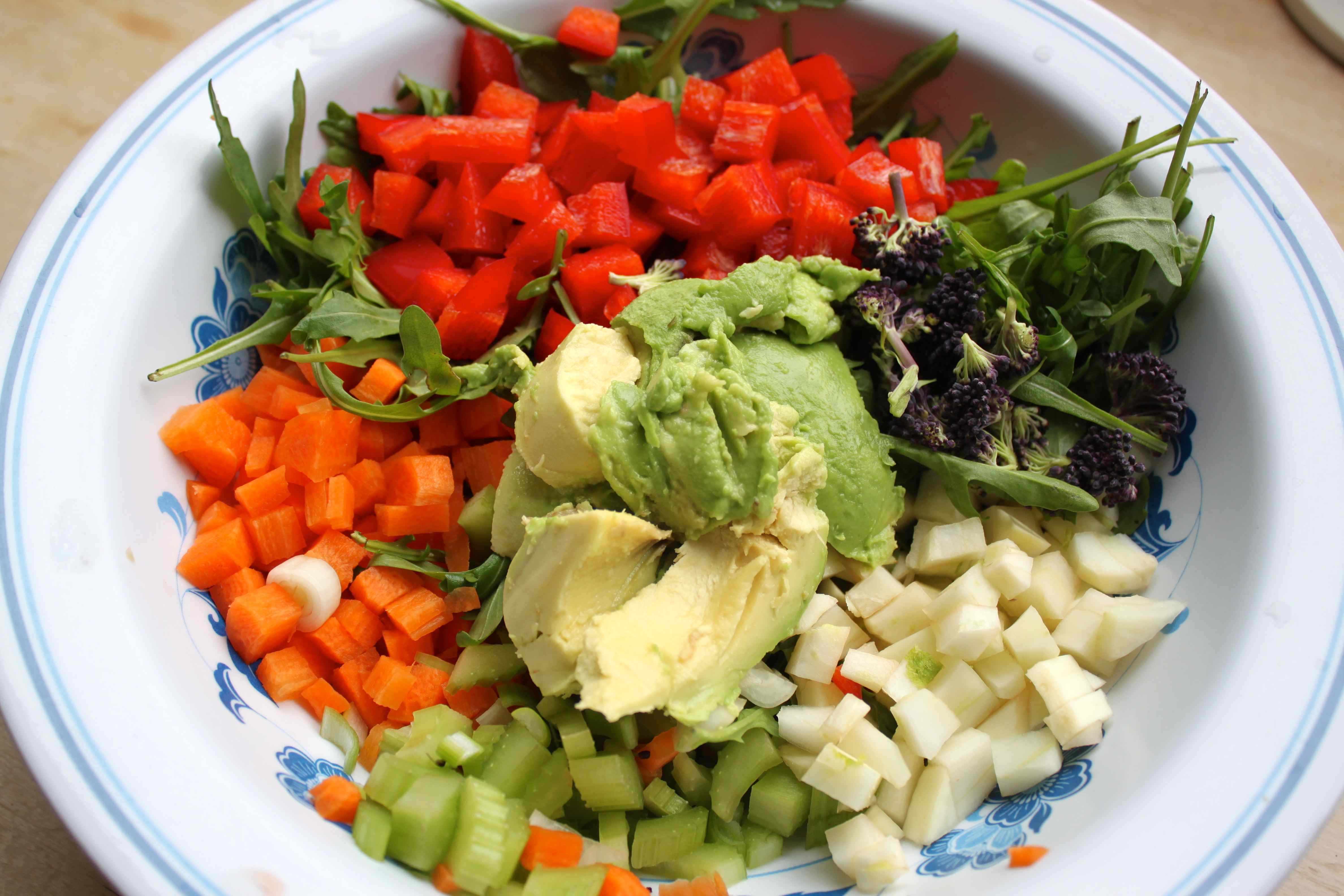 I made my salad with half a tub of rocket topped with diced fennel, celery, carrots and red pepper, plus some purple sprouting broccoli and half an avocado. I managed to not add any salt or pepper or seasonings. Just pure, whole, unprocessed vegetables.