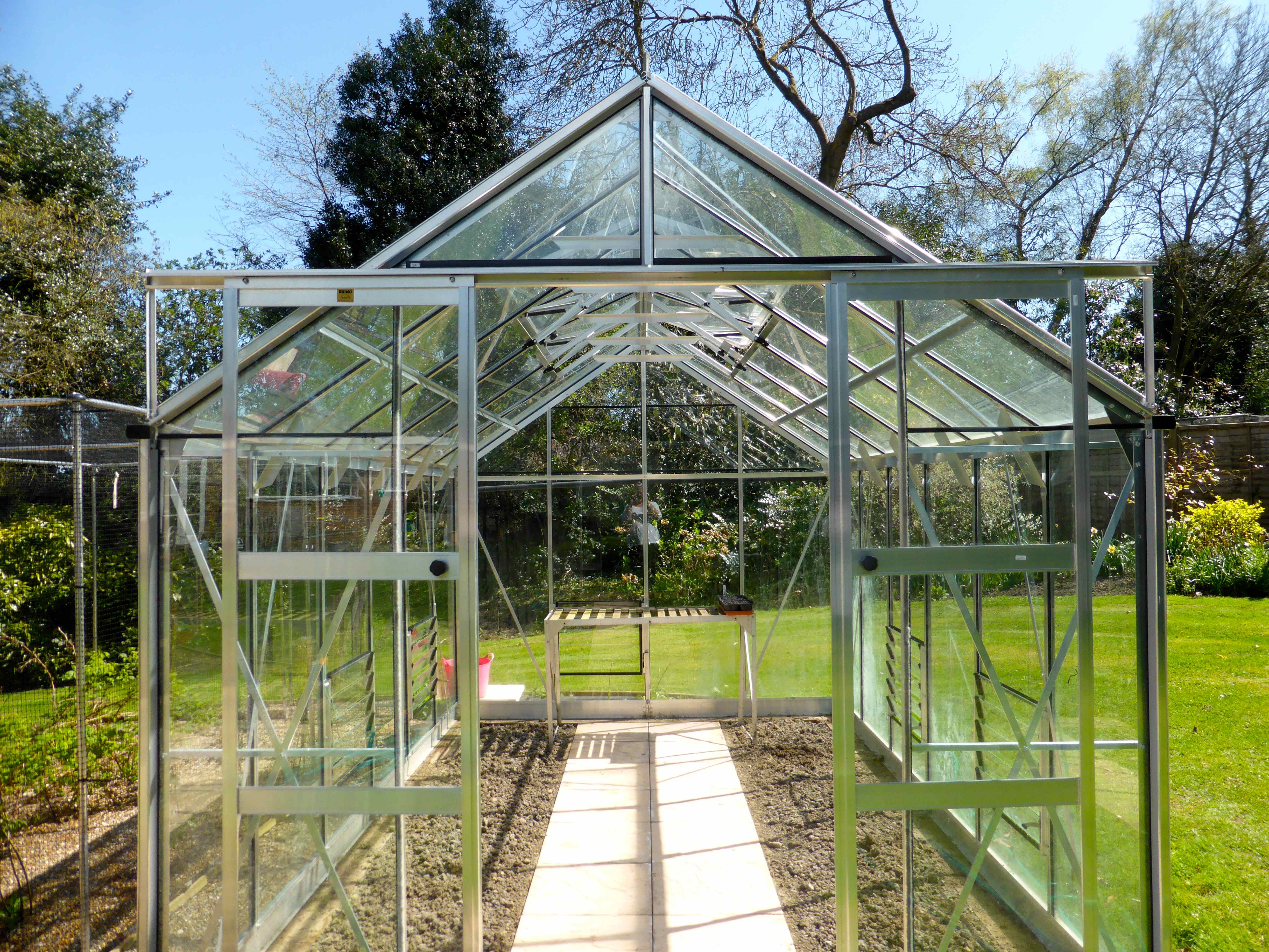This is the lovely greenhouse I had installed last year and which I love as it is so wide. I sowed seeds this morning for rocket, mizuna, spinach, courgette, purple string beans, cherry tomatoes and plum tomatoes. I wanted to sow lettuce but have no seeds so I must get some.