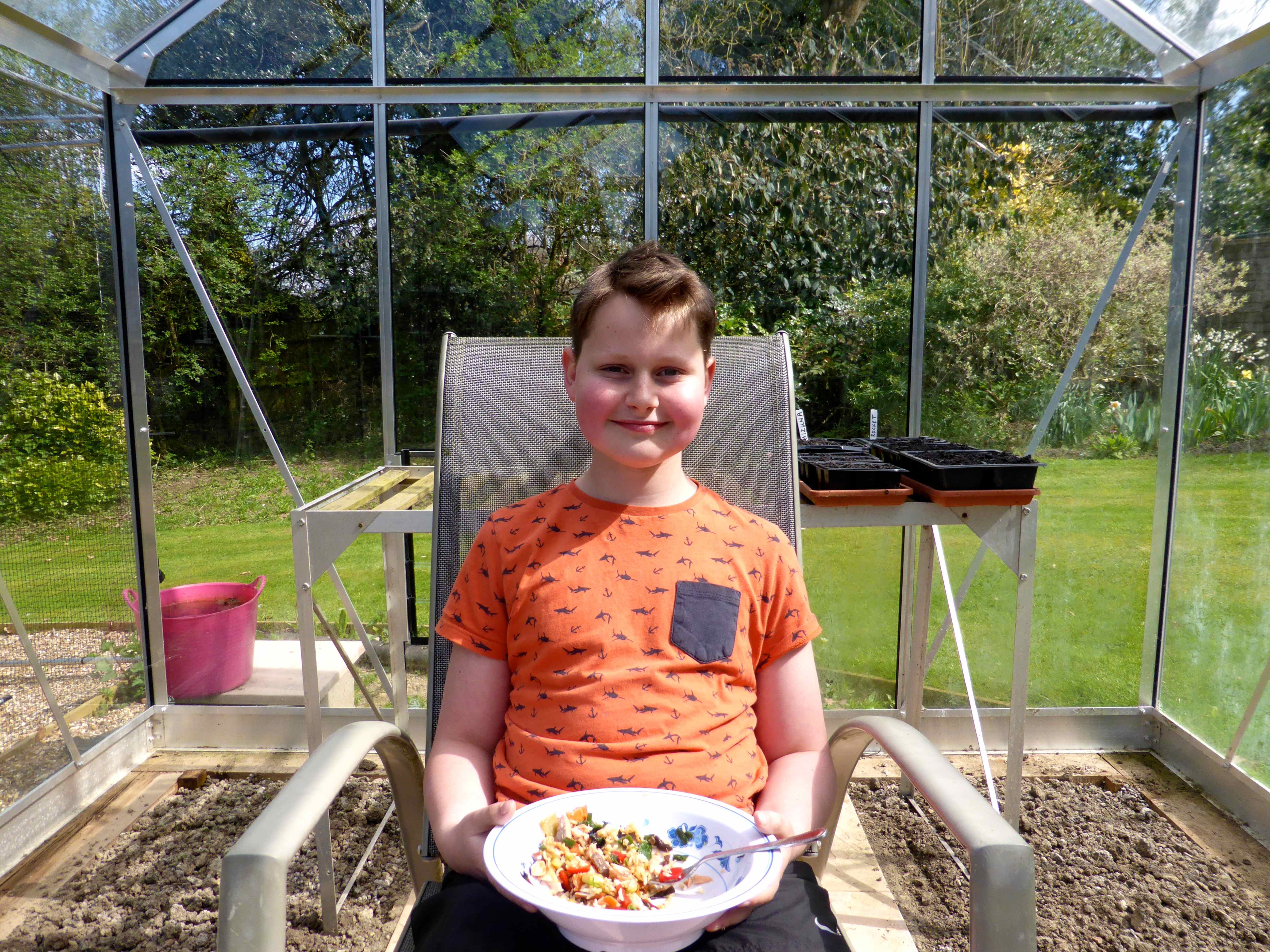 Harvey thought that sitting in the greenhouse was a strange thing to do but I am thinking it is quite an obvious thing to do and will be doing so again. A room with a view 🙂