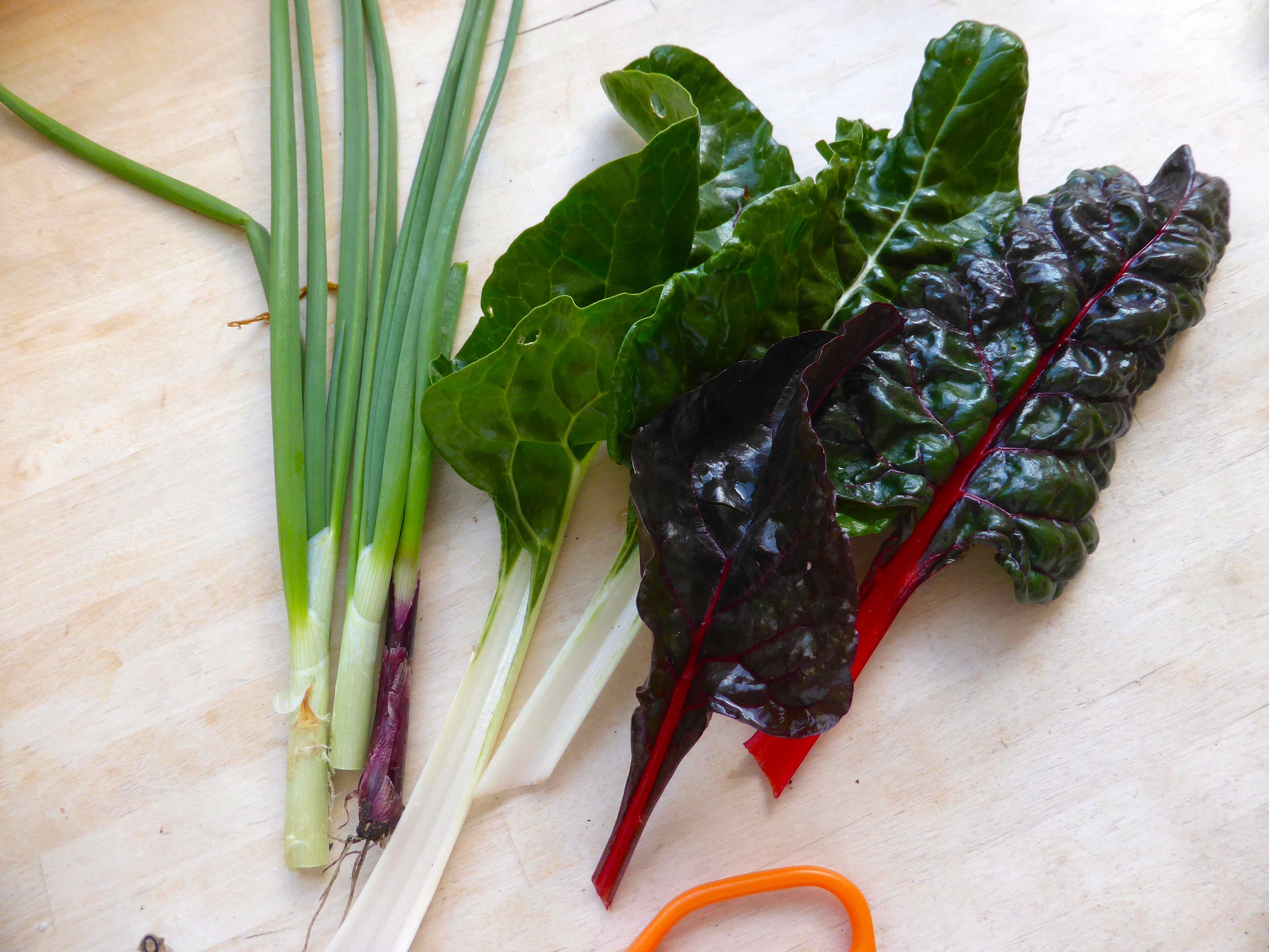I stir fried in water rather then oil, the following: garlic, broccoli, red pepper, celery, mushrooms plus the swiss chard and spring onions. Eaten with some soy sauce and chilli flakes. It was so good.