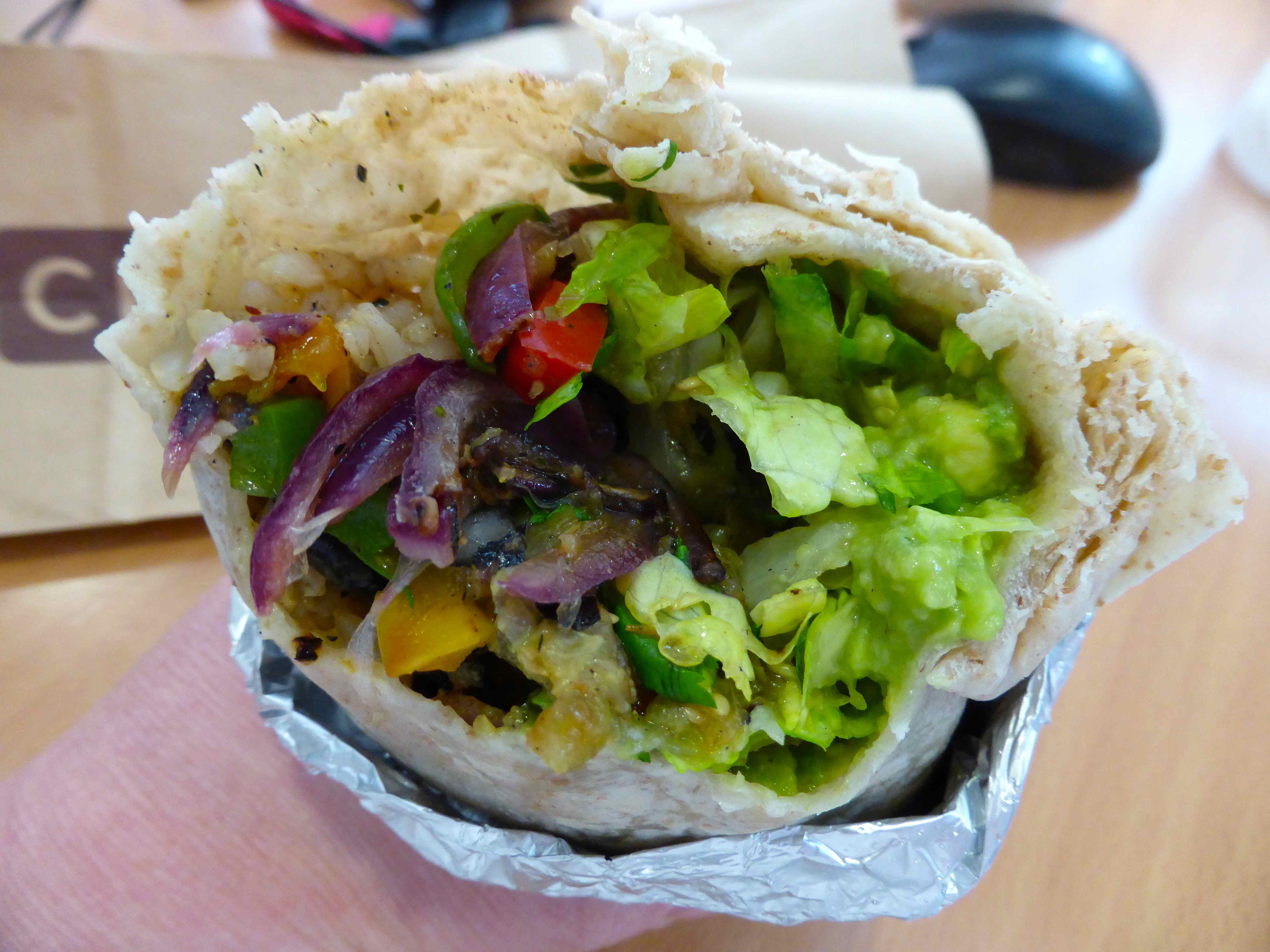 I enjoy Instagram and follow lots of interesting accounts, many of whom eat the same way I aim to eat – whole food and plant based. One account I follow posted a photo last week of a vegan burrito from Chipotle. I was intrigued because the chaps at work regularly go there as we have one very close to the office and their lunches do look very good. I bought the Vegetable Burrito. It doesn’t look that appetising from the outside, but oh my !