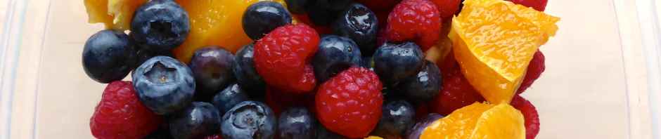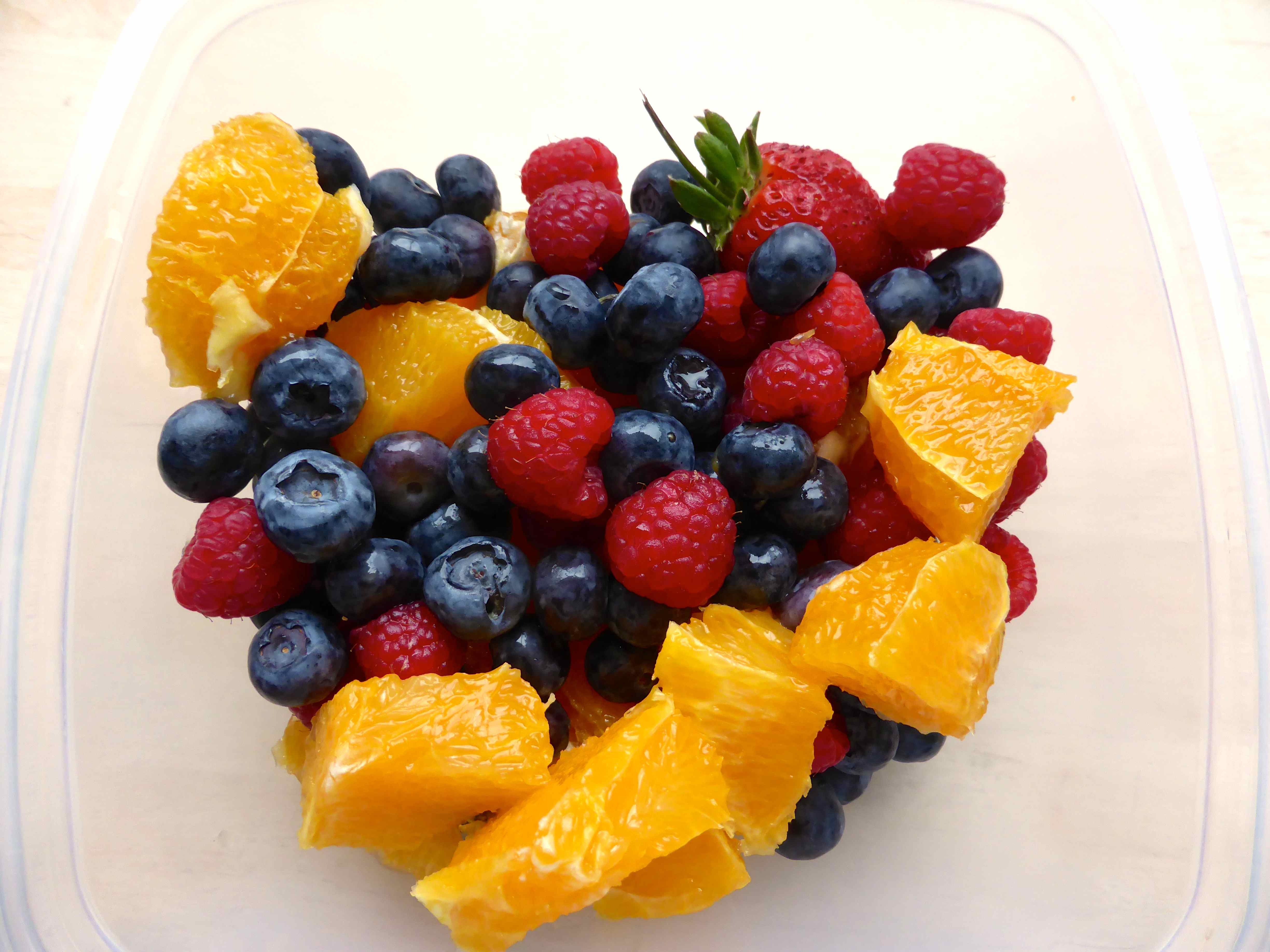 Breakfast was a bowl of berries (raspberries, blueberries and strawberries) with an orange.