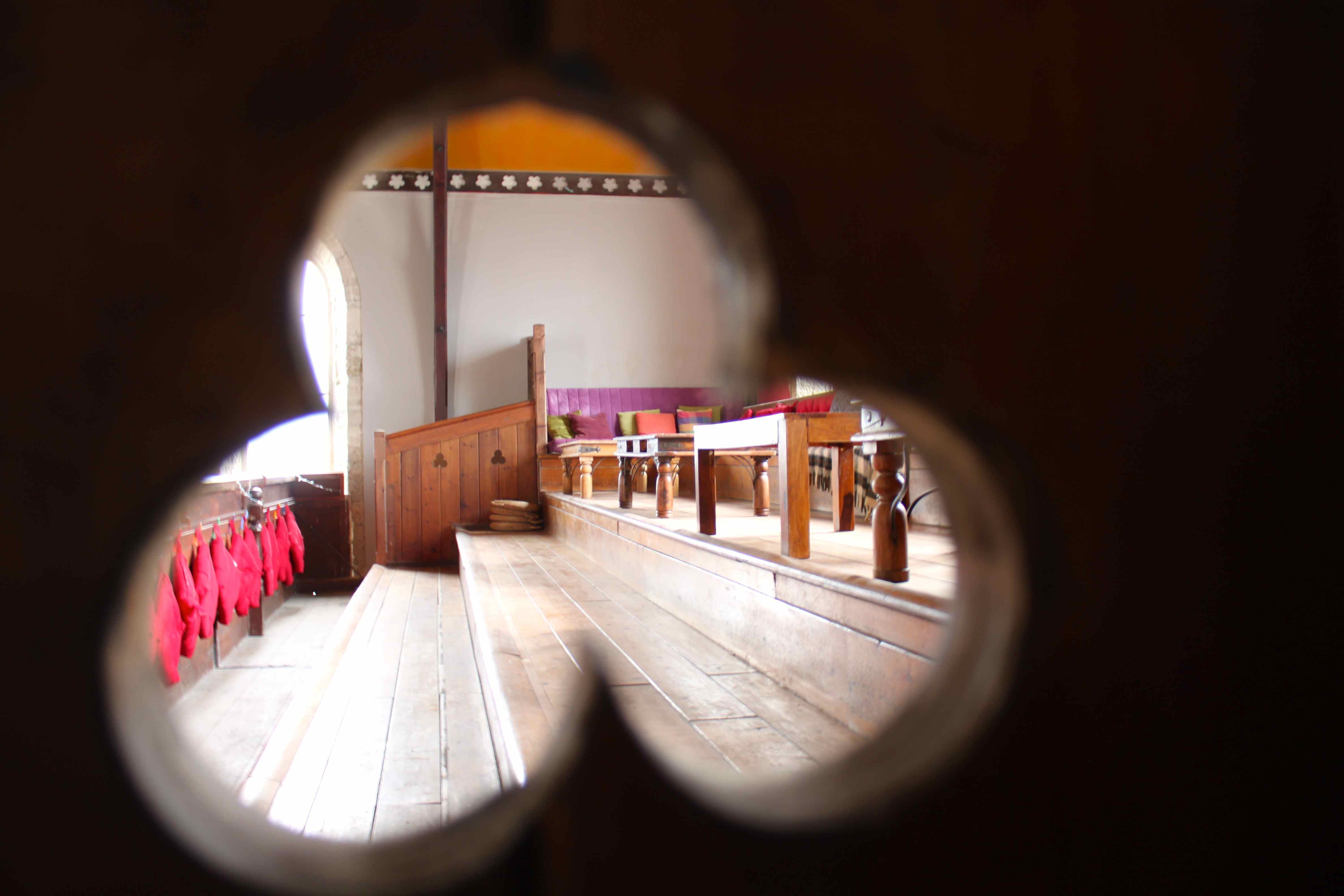 The huge fireplace in the church where I spent many happy hours, sitting and chatting and quaffing far too much wine.