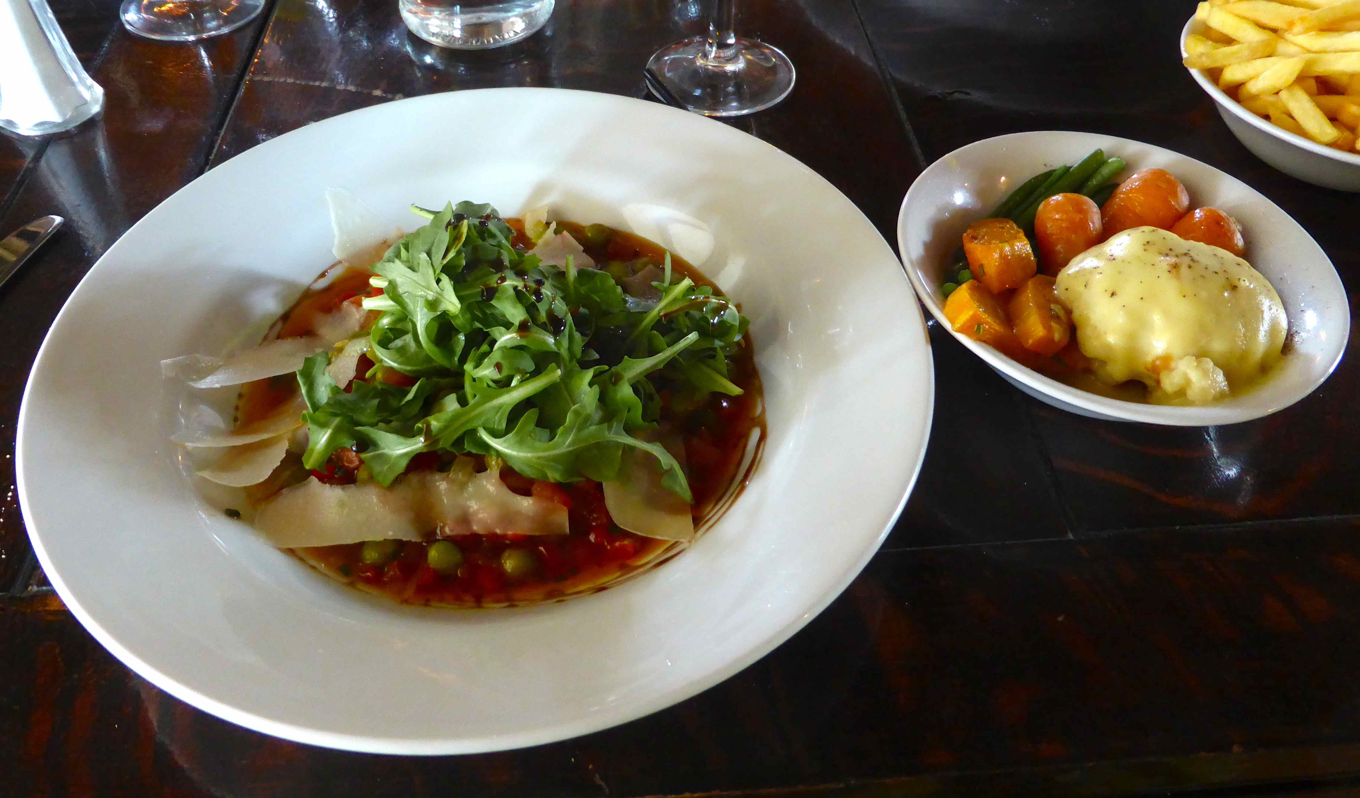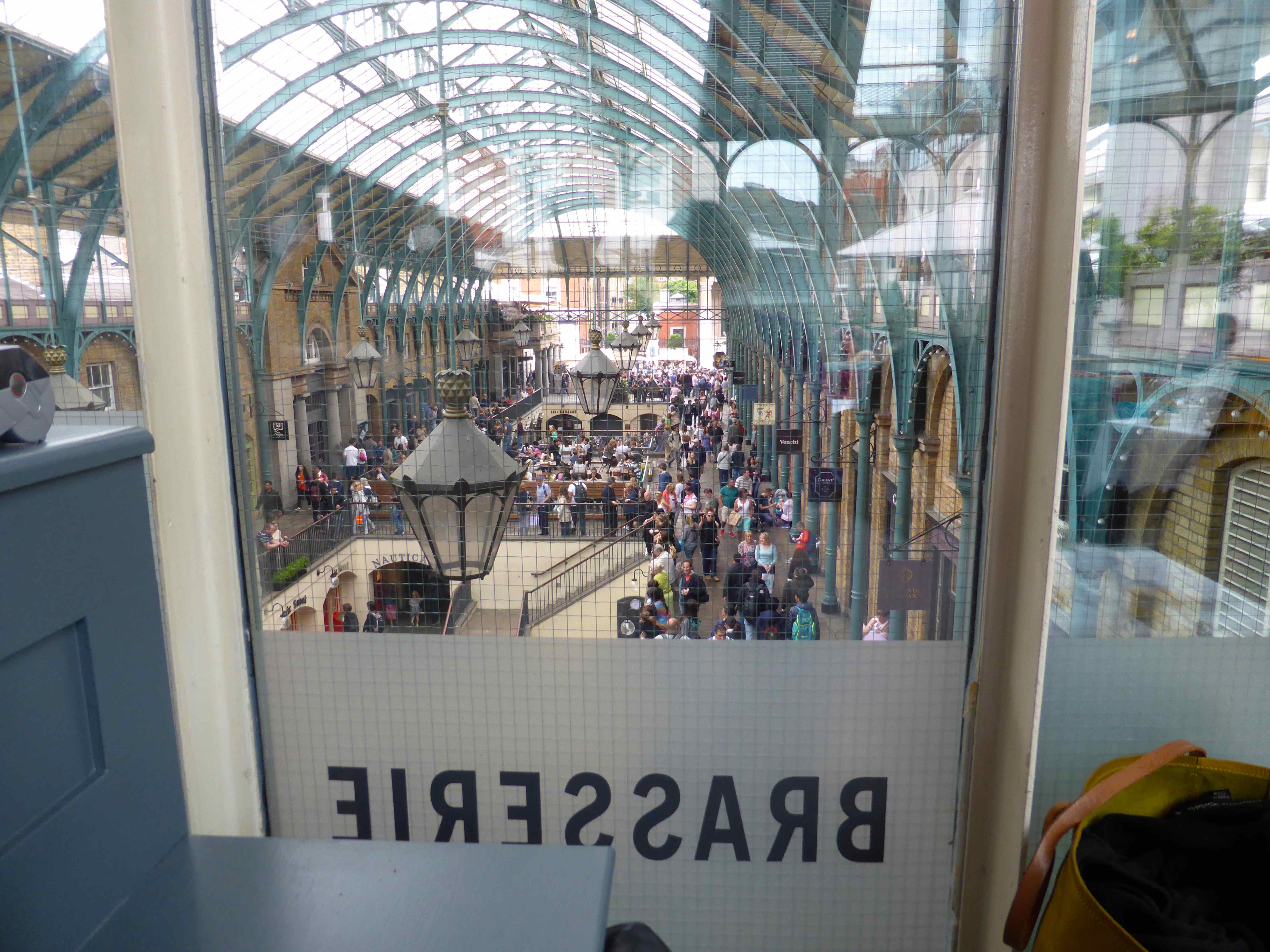 This was a good place for lunch but here’s a tip; the central area of the restaurant was very warm. We were lucky to be at an end and not in the large glass rooved central area which may have been uncomfortable on a warm day. We also got lucky because our table had a view over the indoor market in Covent Garden. It was just perfect.