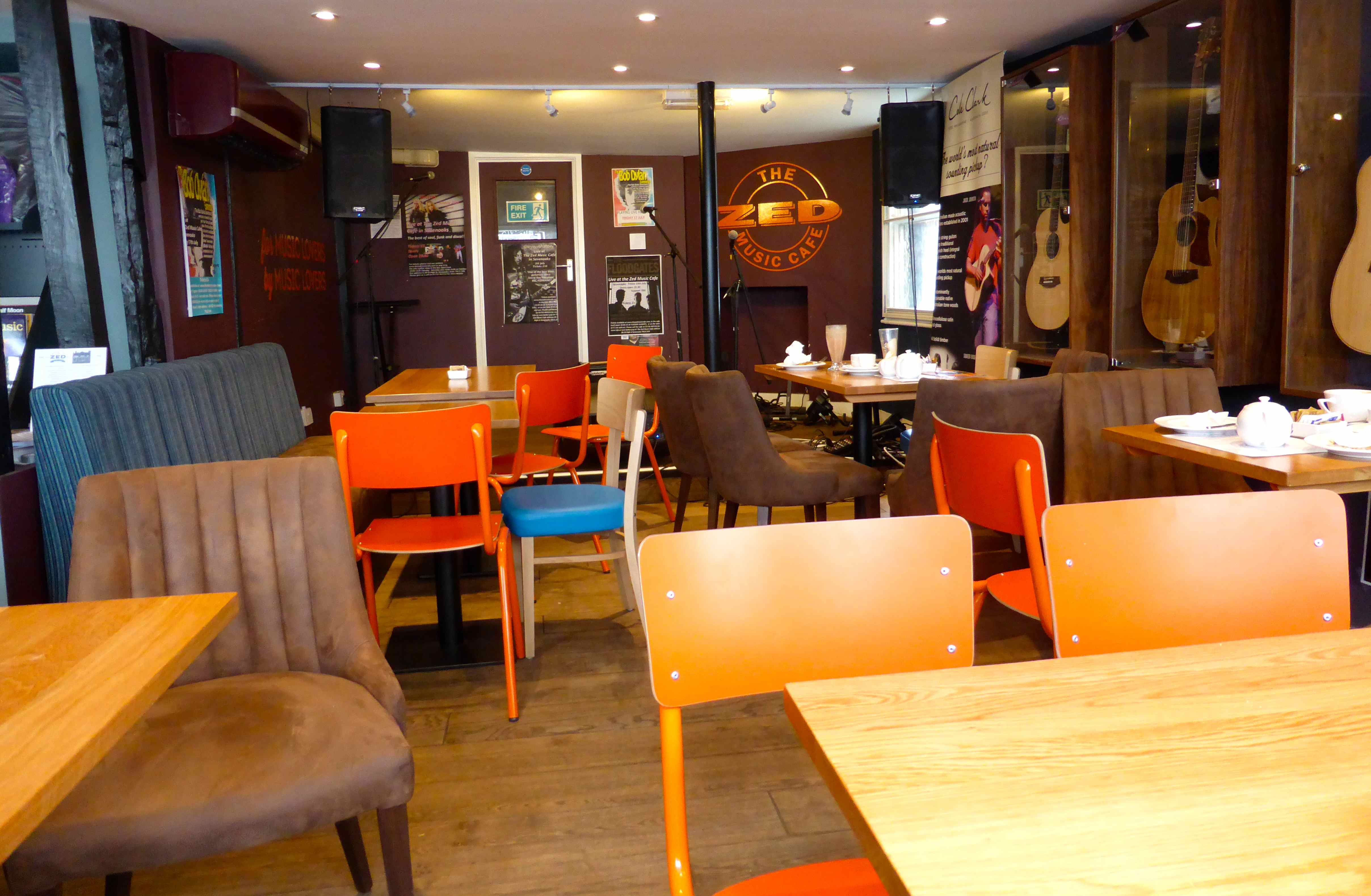 The Zed Music Cafe. It was quite busy when we arrived but three tables full of people left almost as soon as we sat down! Harvey enjoyed his toasted sandwich and soya milkshake and I had a soya milk latte. Very friendly staff and my only complaint was a very small menu. i.e. a very limited choice but when I explained we were not eating dairy, they were very helpful.
