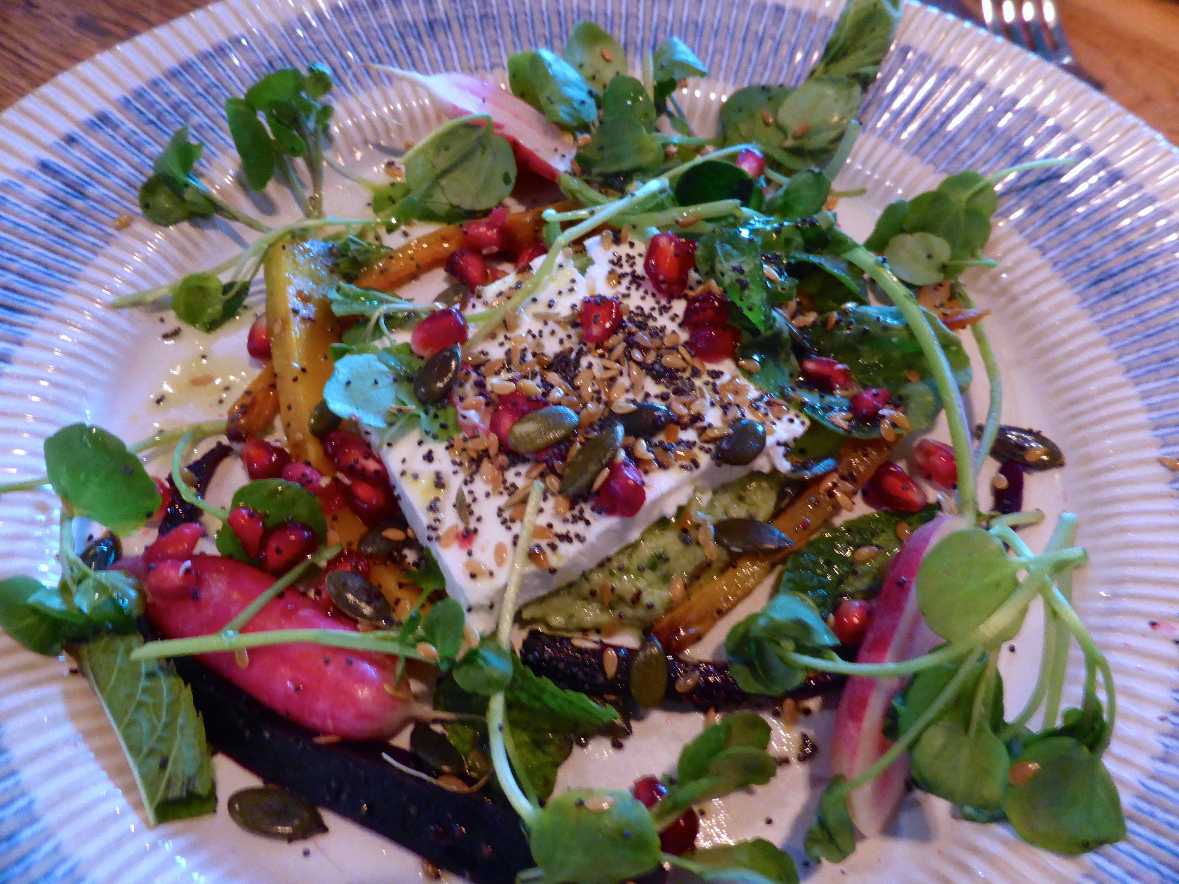 Harvey and I headed up to London early to get some shopping done and then met my sister Lucy and her family for lunch. We wanted to go to Dishoom but as usual, it was busy with a long queue so we went to Jaime’s, which is close by. I had a lovely cocktail and some bread to start with and then the heirloom carrot salad. It came with Feta which I gave Trevor. Everything in this dish was fresh and full of flavour and I would definitely have it again. I had the small size so I could also have another salad with it. I really like the way many dishes at Jaime’s can be served as a large or small portion.