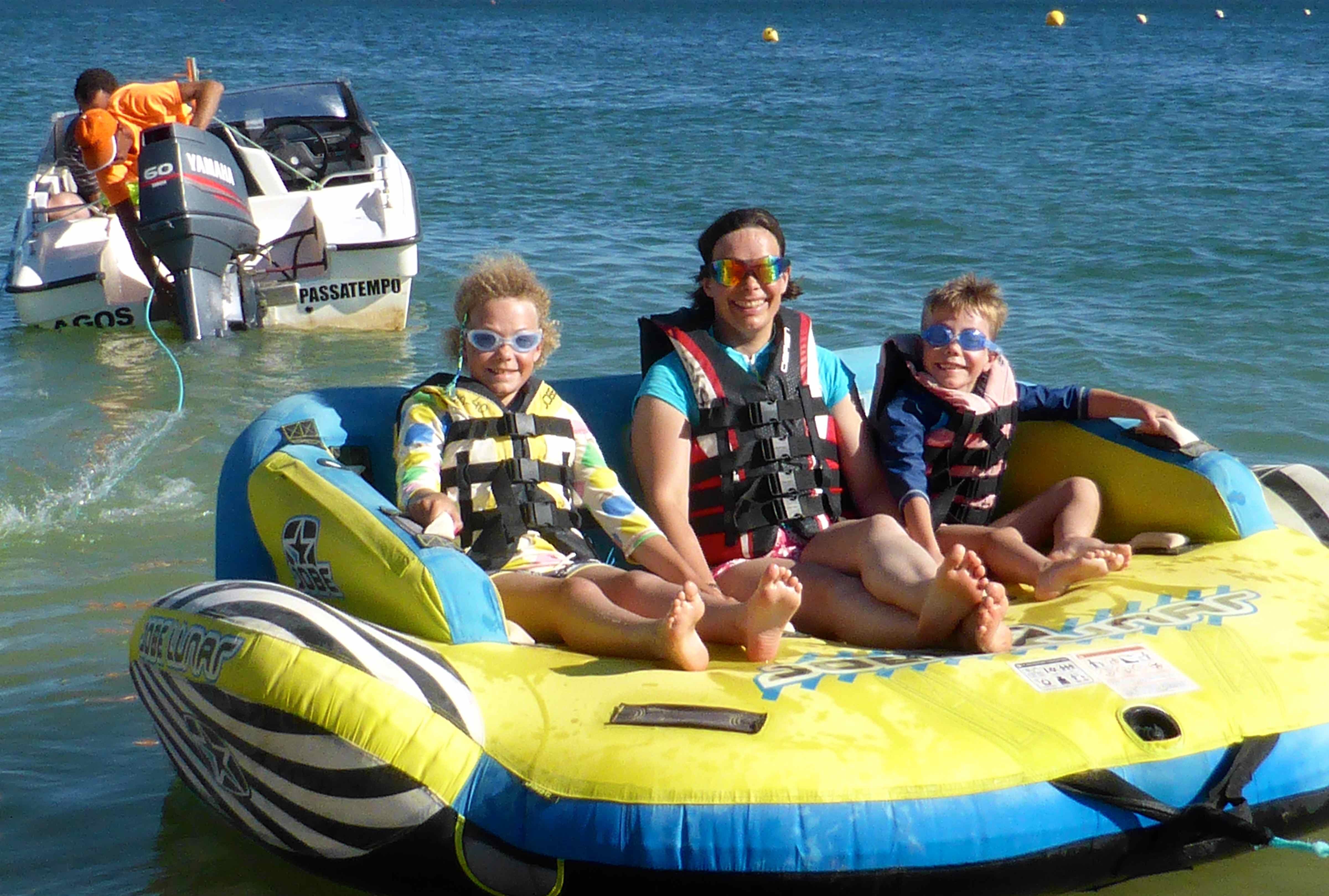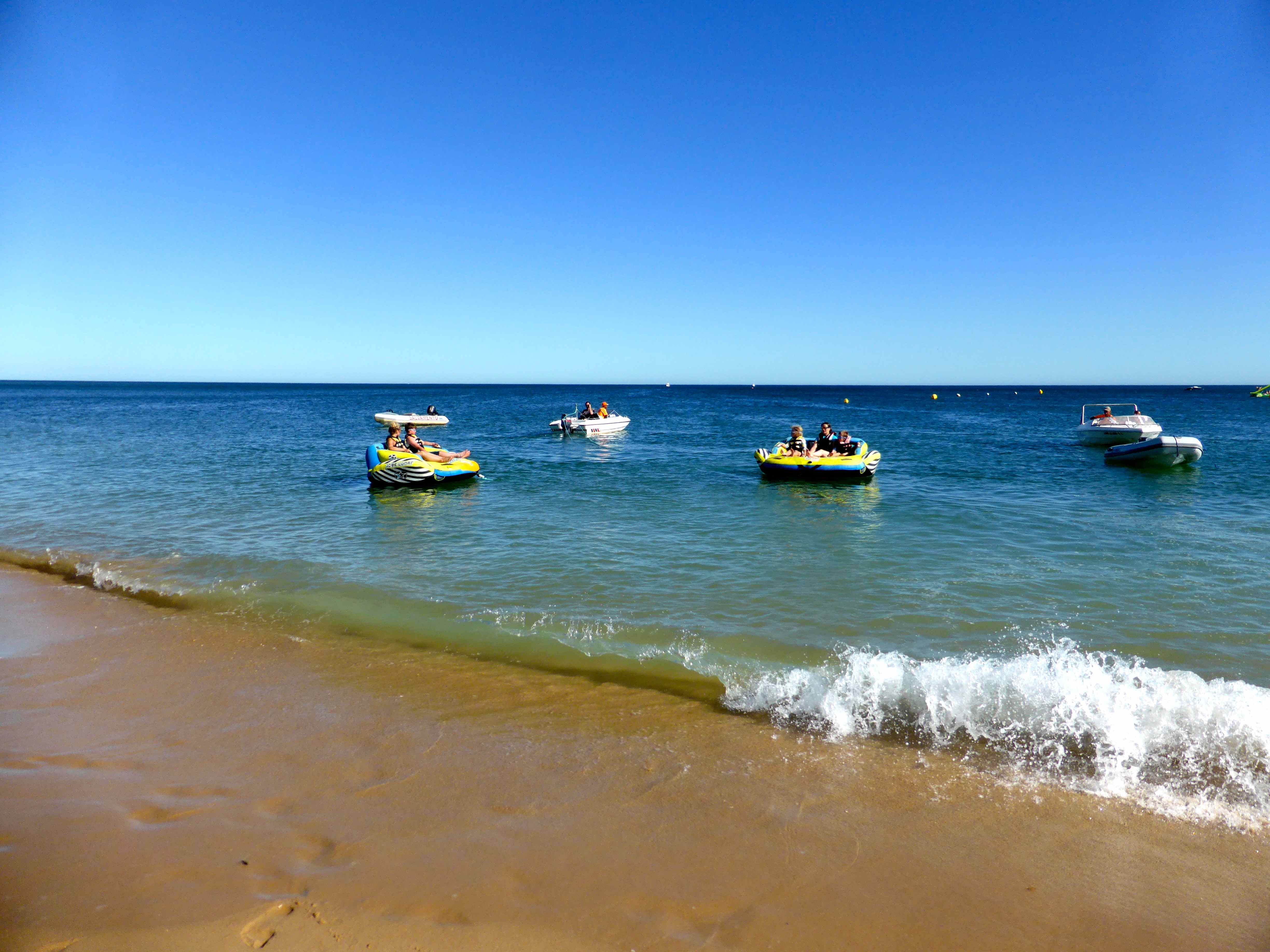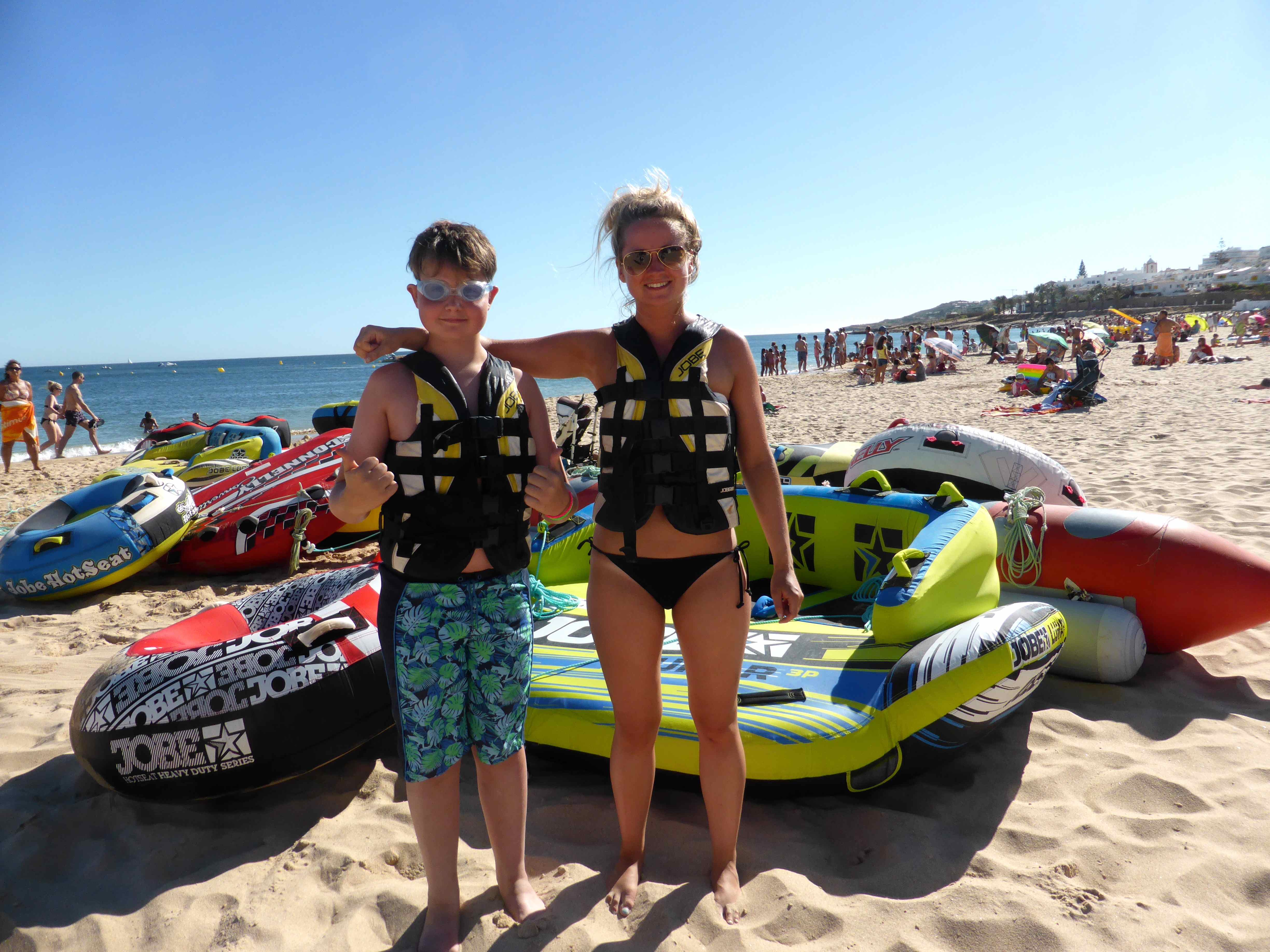In the late afternoon we went down to the beach and the young folk went out on armchairs which looked like fun but I didn’t really fancy it. I was too worried about being bumped off but that did not concern these two.