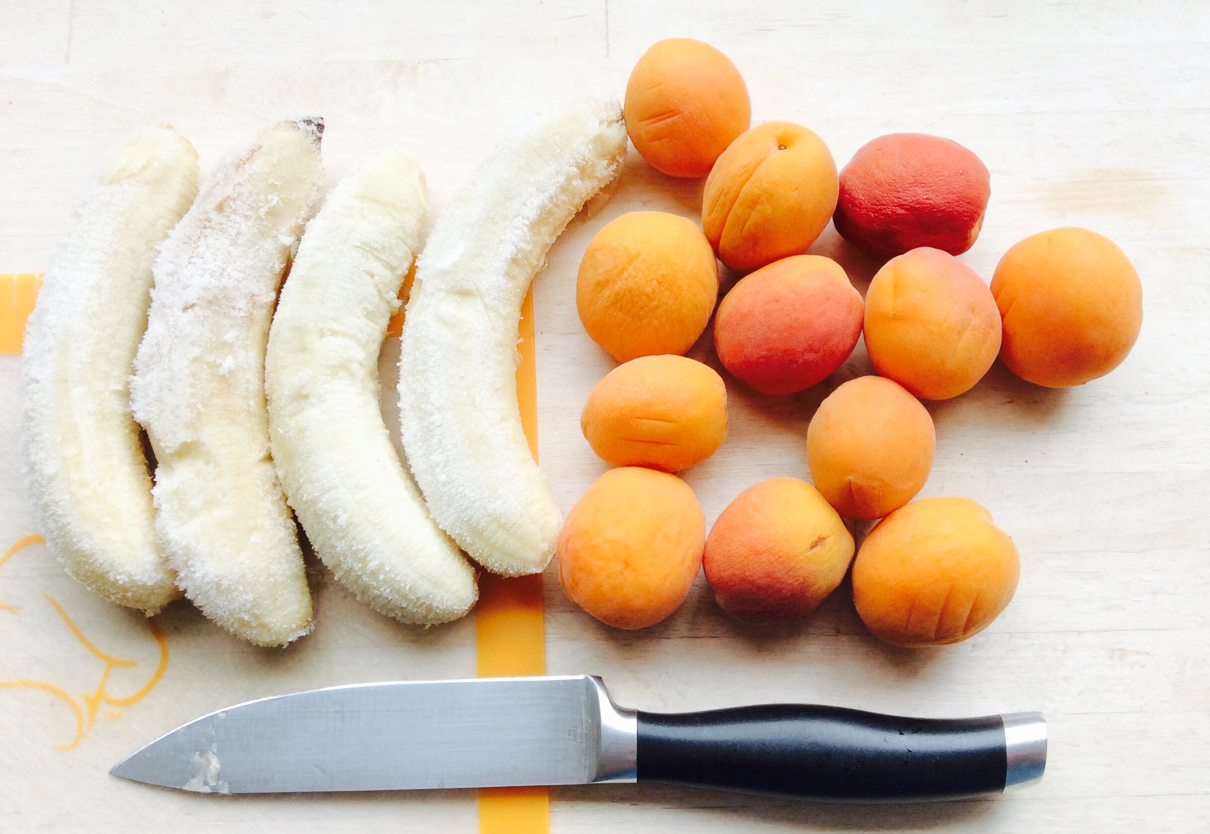 Food of the Gods!  Frozen bananas and fresh apricots, blended together into a thick sweet smoothie. It was perfect.