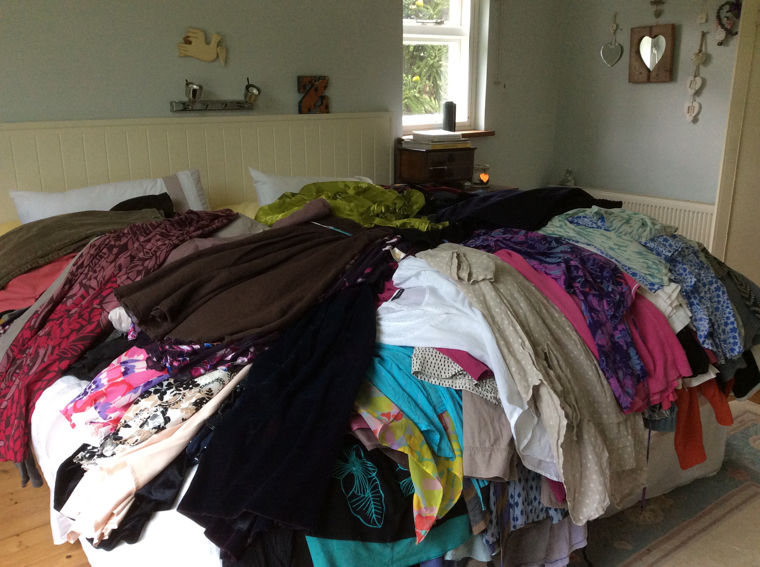 If you want to be tidier and less cluttered then get this book. It is brilliant !! The key points are to tidy by category rather than space. So don’t think, ” I am going to tidy my wardrobe”. Instead think, I am going to tidy my clothes. You then have to empty all your clothes from everywhere they are around the house, on to the floor. So I gathered clothes from 3 wardrobes, a large chest of drawers, the laundry, beside the door and hanging over the banisters and heaped it on my bed. Previouslt, things were neatly hung (I thought) but quite squished