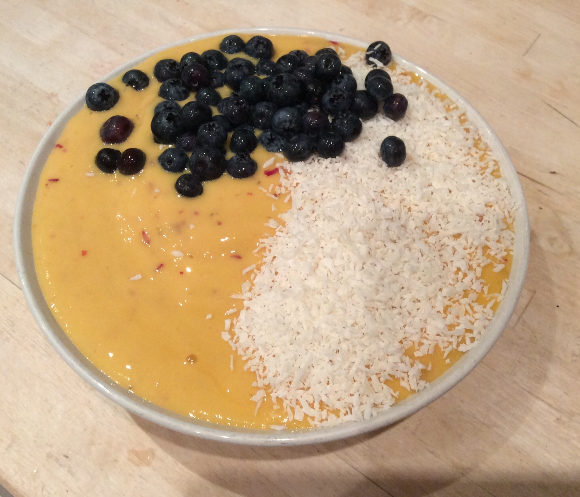In the evening I had a mango, plum and banana smoothie with blueberries and coconut.