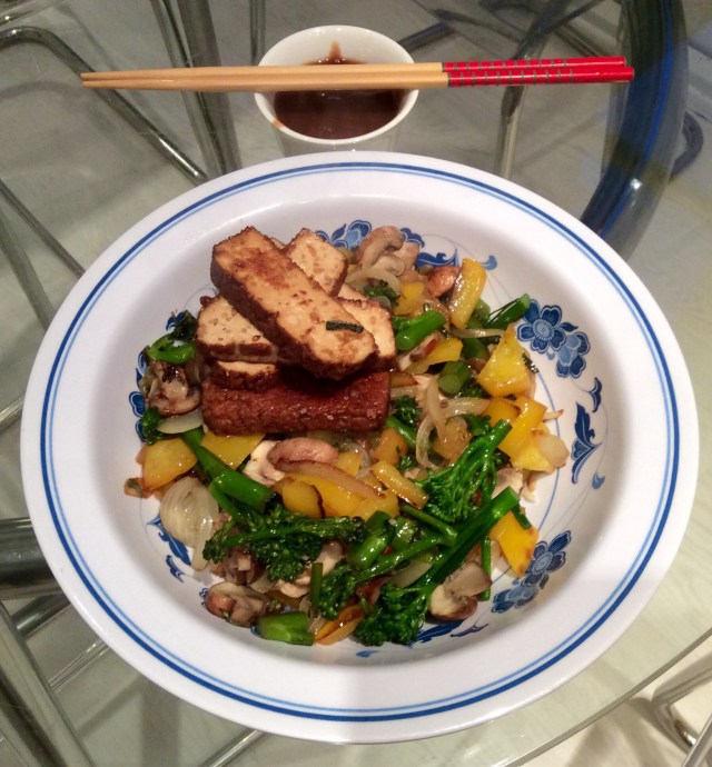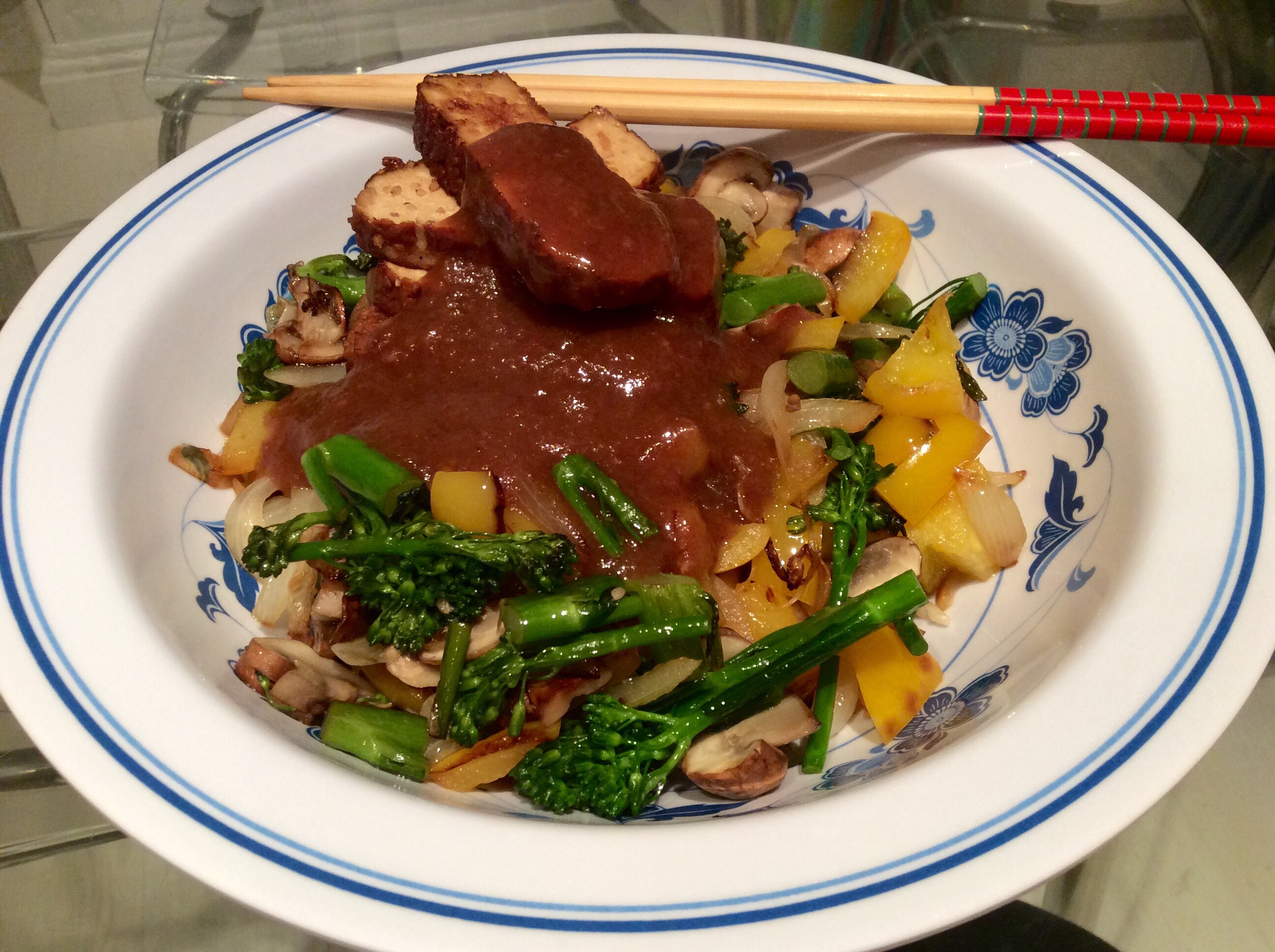 I did munch on 2 dates, a plum and a banana while I cooked the 2 plum dishes I am about to share, and my dinner which was a lovely stir fry with tofu and the sweet chilli plum sauce I made. Dinner was half a cup of brown Basmati rice, stir fried onion, broccoli, yellow pepper and mushrooms, plus tofu with almonds and a side of plum sauce.