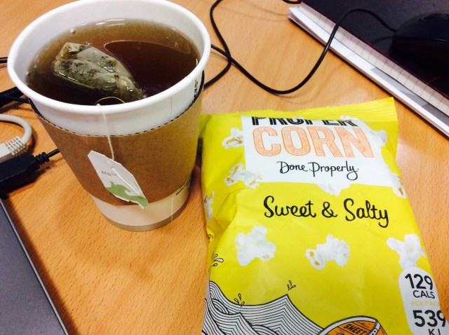 That was not quite enough to satisfy me but a mug of green tea and bag of popcorn filled me up.