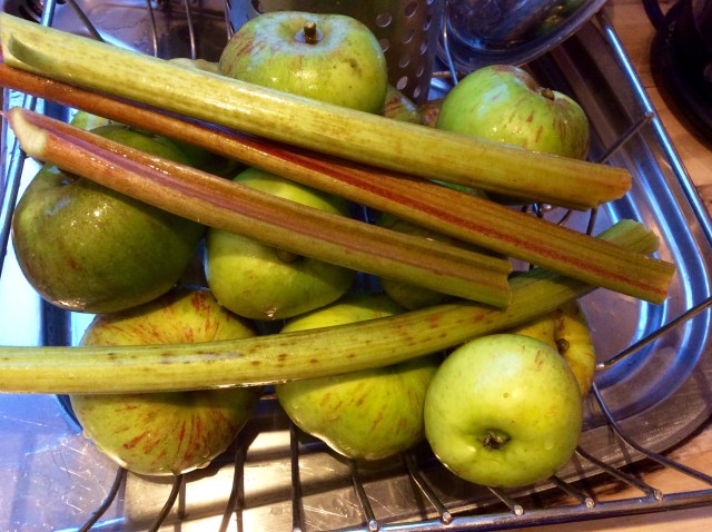 I also made a rhubarb and apple crumble, using more produce from the garden and some of the granola mixture as topping.
