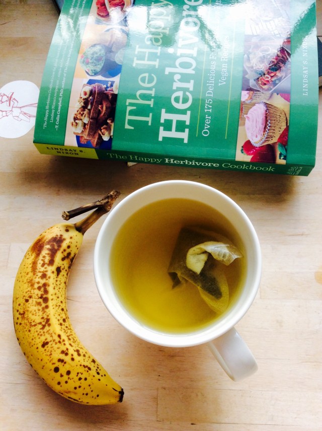 Back at home I prepared breakfast.  Neither of us had eaten earlier and we went out cycling with just water inside us so we were hungry.  While I prepared breakfast I had a mug of green tea and a banana.