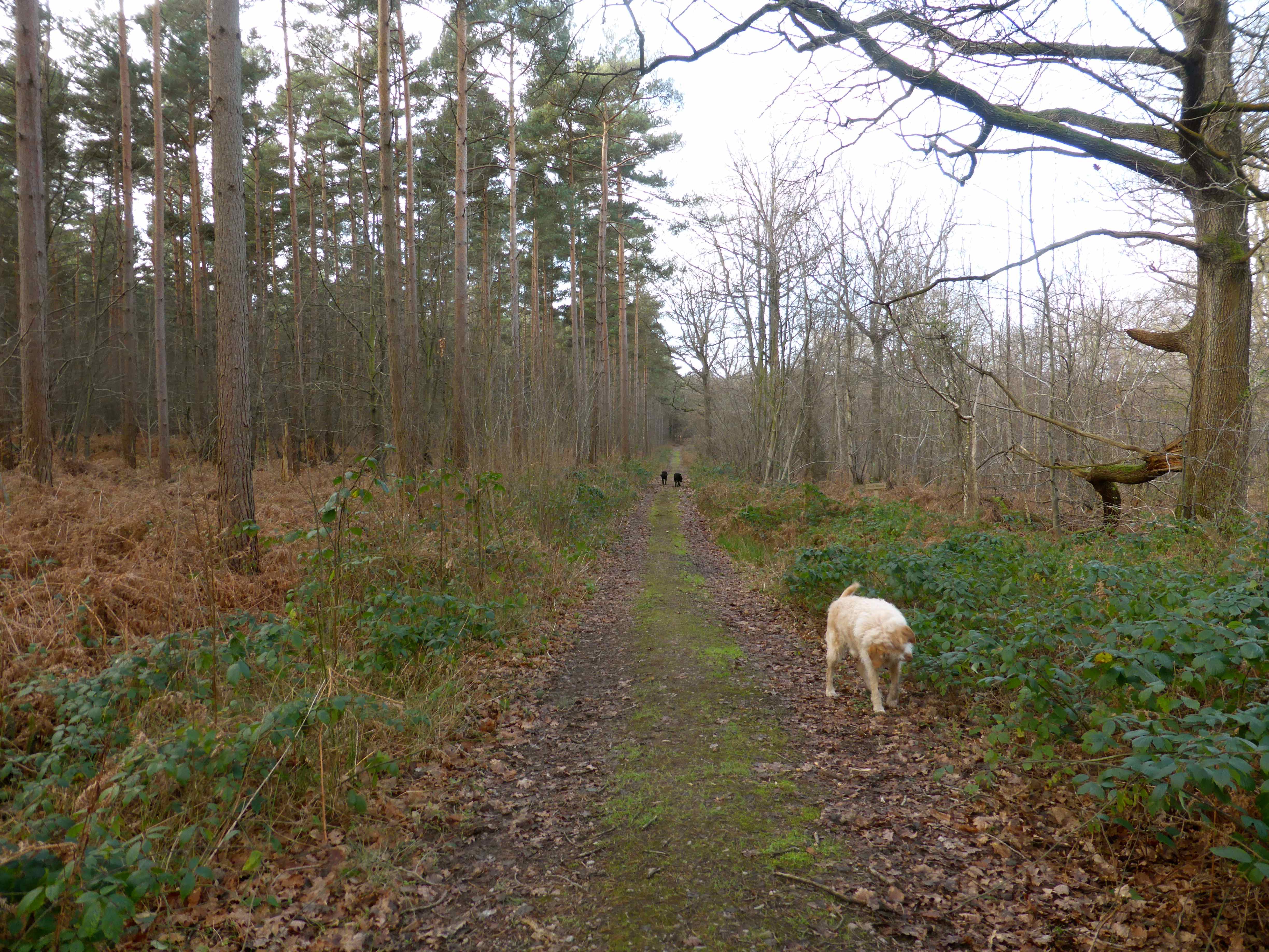 3 dogs in woods