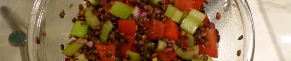 This is green lentils, dressed with lemon juice and olive oil, with tomatoes, celery and red onion. Absolutely delicious.